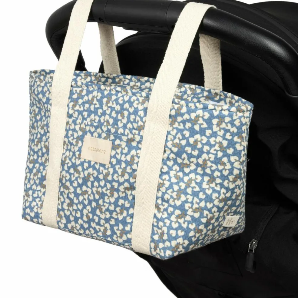 – Extérieur : sergé de coton bio imprimé et matelassé.