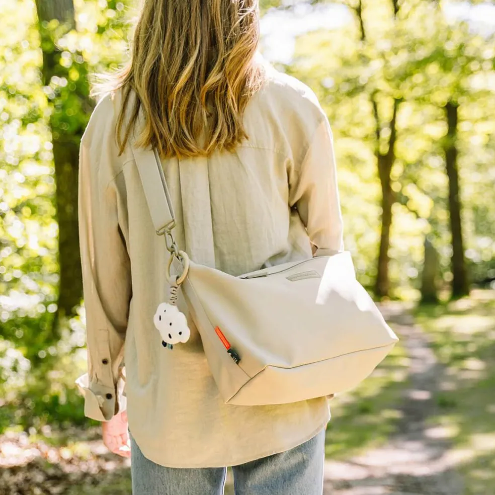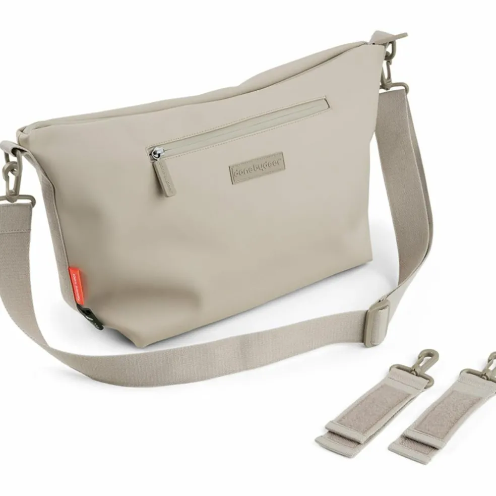 – Sac de poussette couleur sable pour tous les indispensables de bébé.