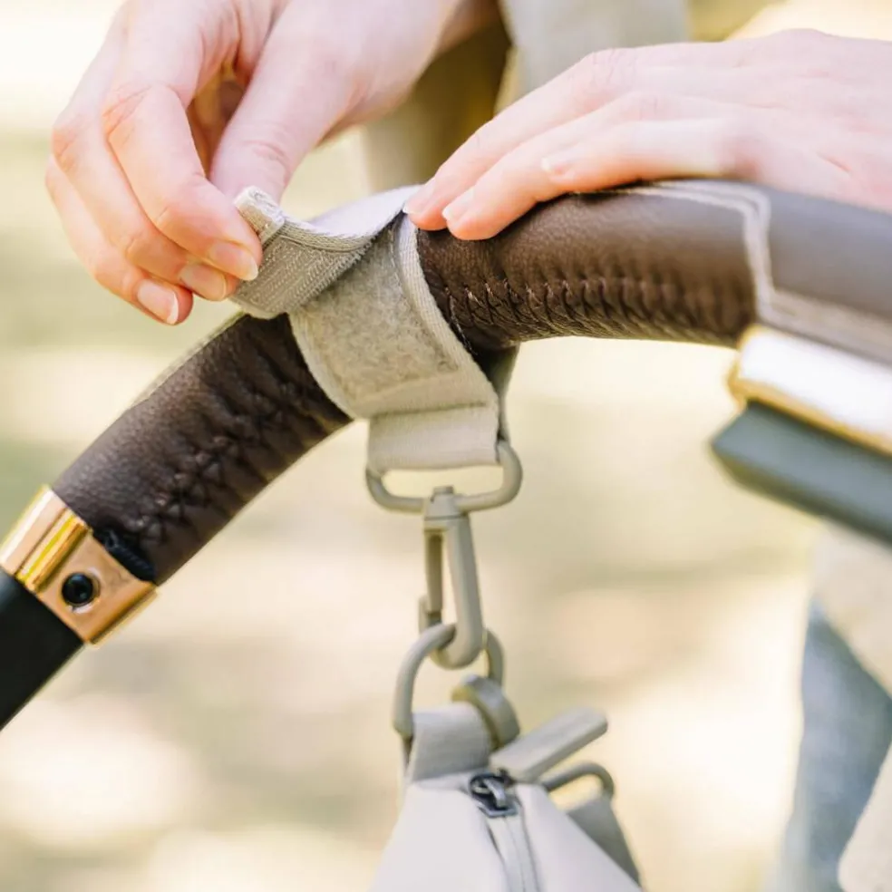 – Fixez le sac à la poignée de la nacelle à l’aide des crochets inclus.