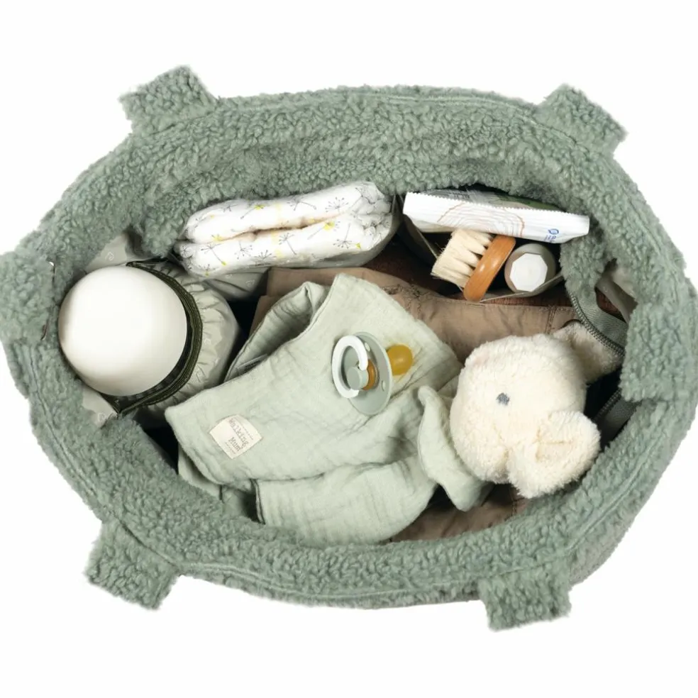 – Le sac crossbody Paddington, ou bandoulière, en matière teddy vert pour poussettes, est un modèle très léger mais résistant et spacieux, vous permettant de transporter tout ce dont vous pourriez avoir besoin lors des promenades de votre bébé.