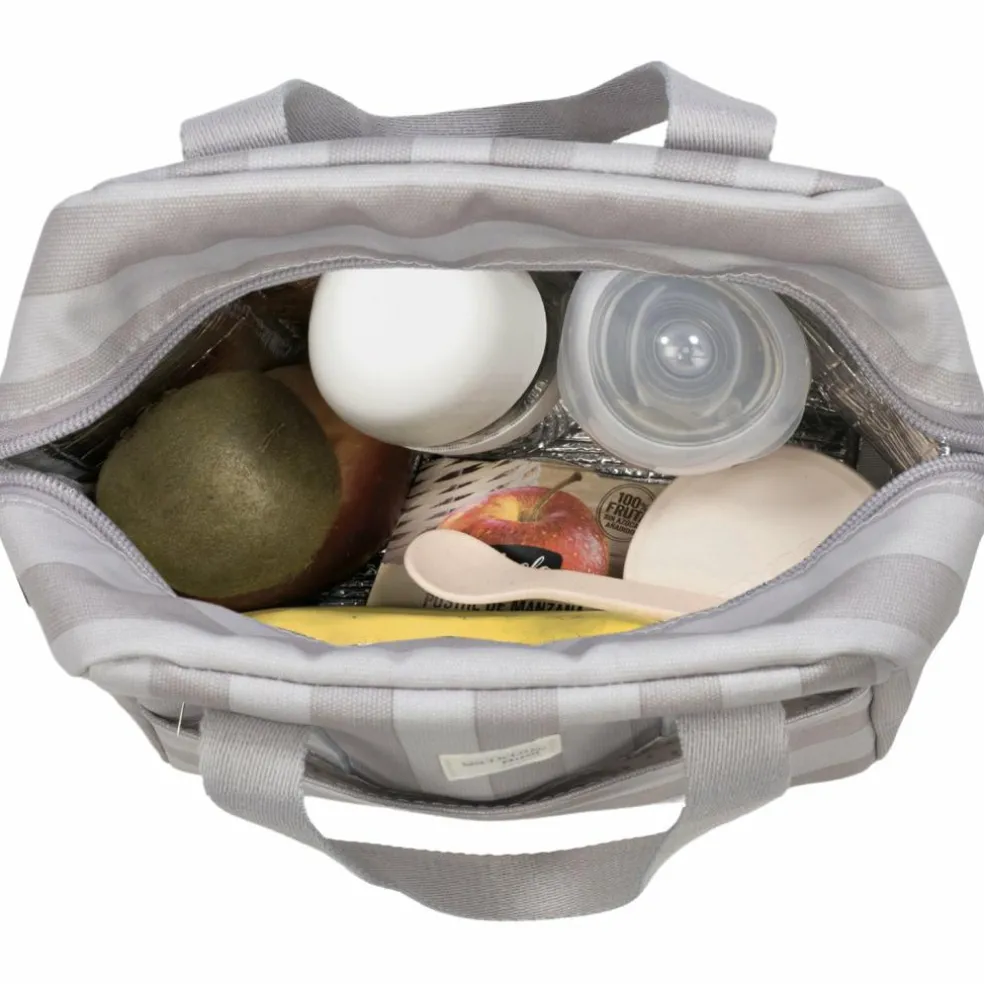 – Sac isotherme Sintra à rayures beiges pour biberons.