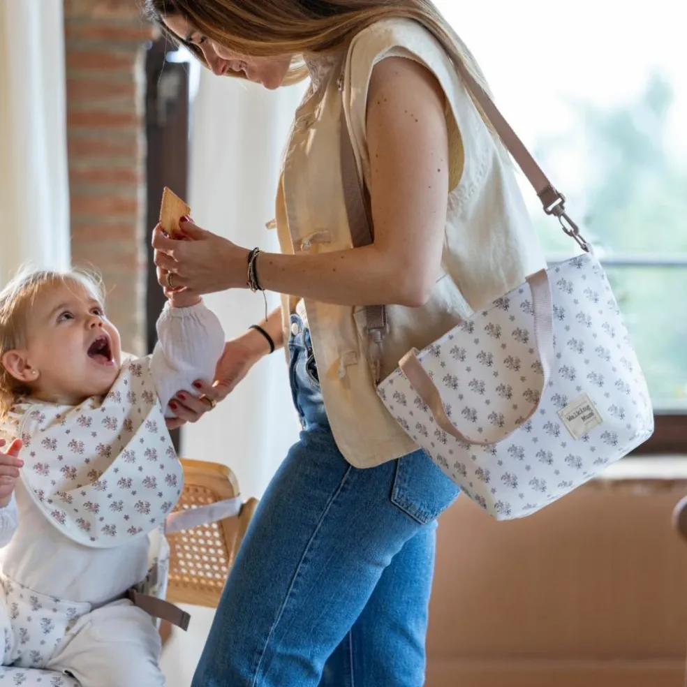 Imaginé pour simplifier les promenades avec bébé, ce sac isotherme au motif fleuri discret et raffiné garde les repas et biberons à la bonne température tout en restant ultra chic. Son design sobre, relevé de petites fleurs beige et taupe sur fond écru, s’adapte parfaitement à tous les styles de poussettes ou tenues de maman.
