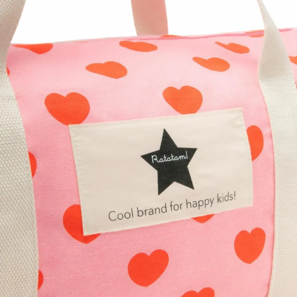 – Design adorable avec un fond rose parsemé de petits cœurs rouges.