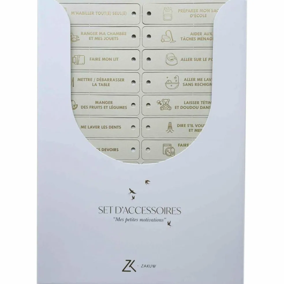 Set d’accessoires en papier destiné au Tableau des Motivations Zakuw pour l’utilisation avec plusieurs enfants afin que chacun ai sa couleur d’accessoires pour pouvoir mieux se repérer.