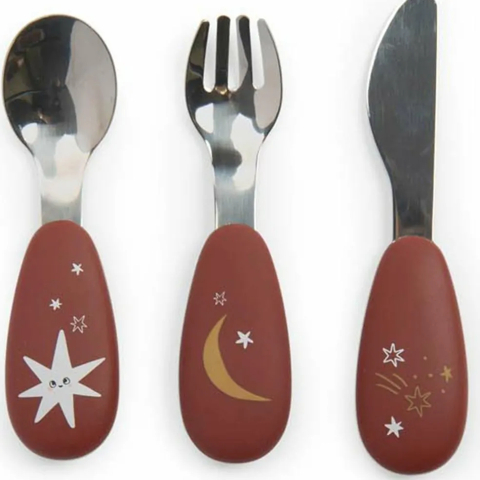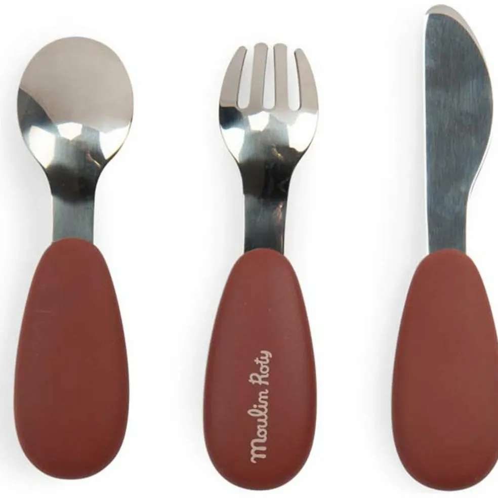 – Set de 3 couverts en inox et silicone pour une bonne prise main pour manger comme les grands.
