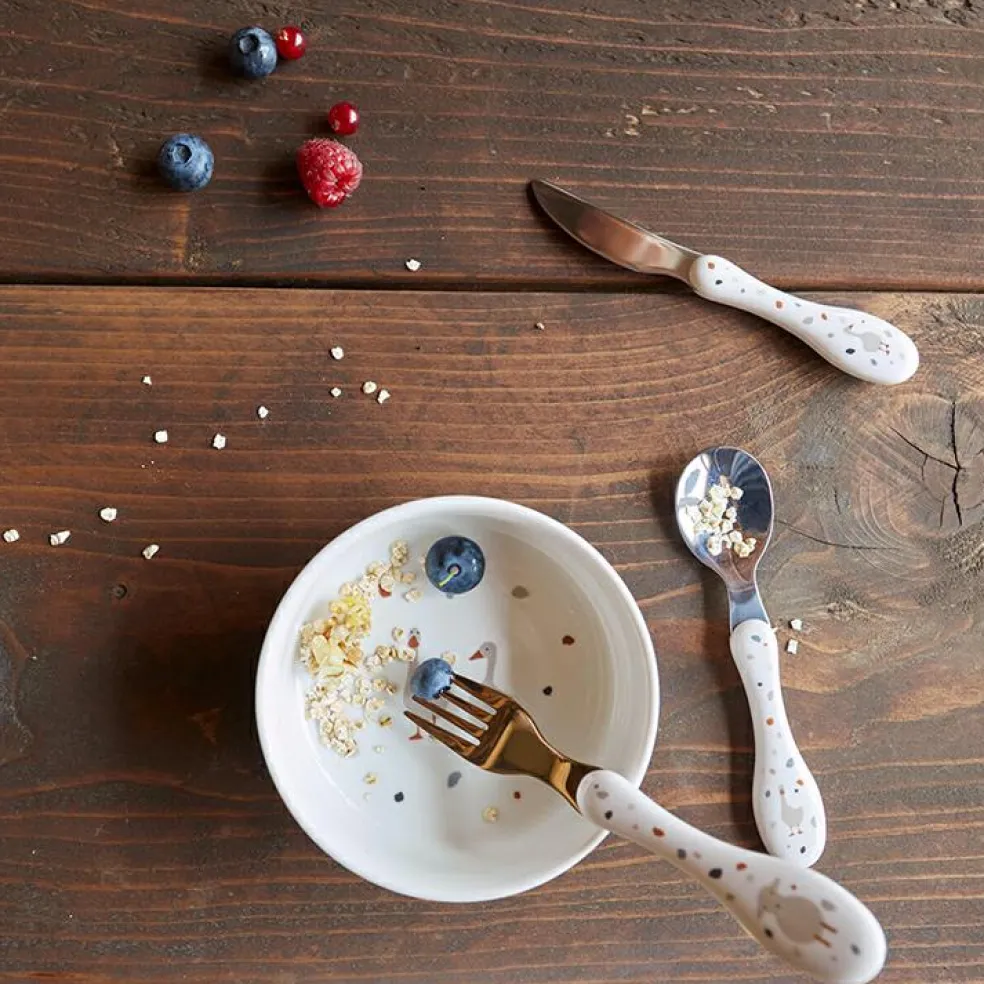 Le set de 3 couverts Tiny Farmer mouton et oie de la marque Lässig permettra à votre enfant d’apprendre à manger tout seul comme un grand en toute sécurité.