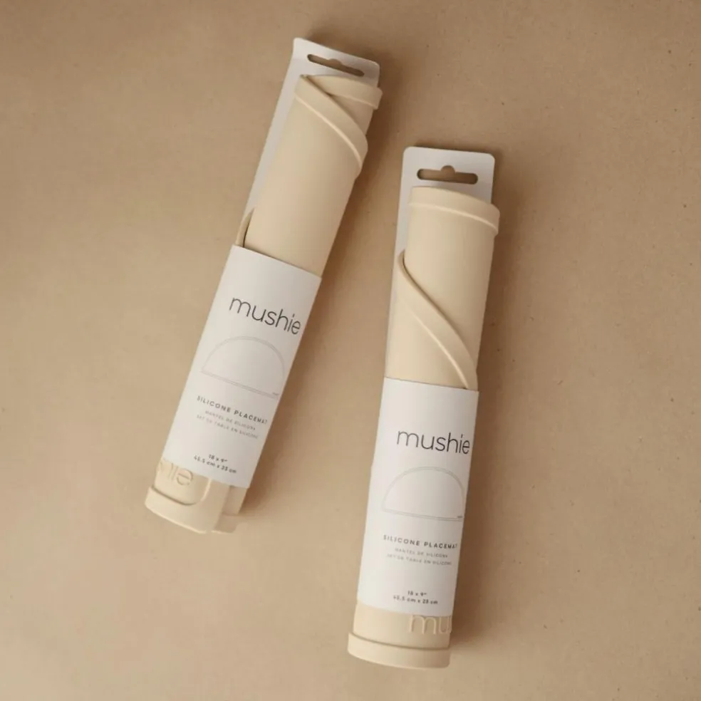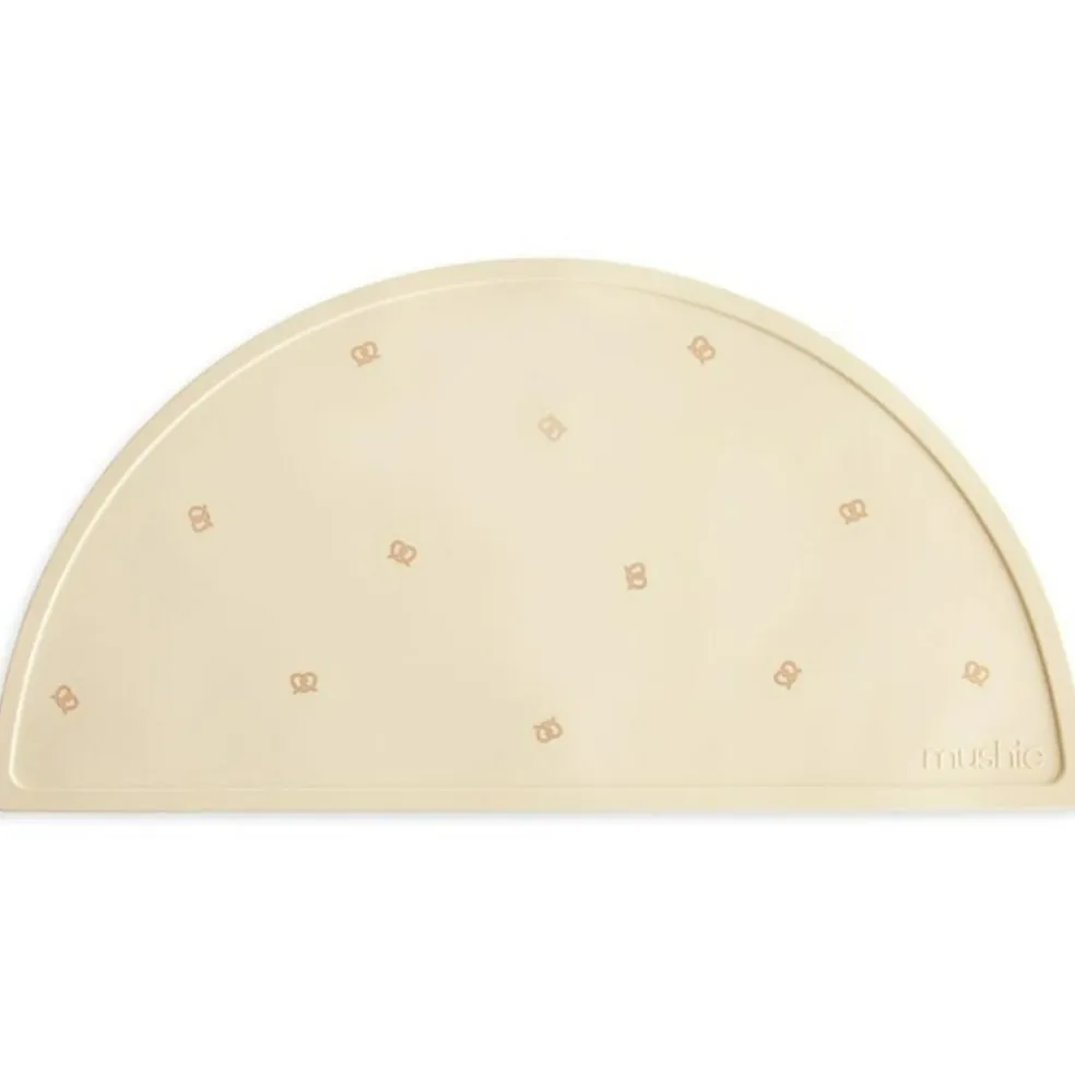 Choisissez l’accessoire indispensable pour des repas sans stress (ni miettes) avec le set de table en silicone Pretzel de Mushie !