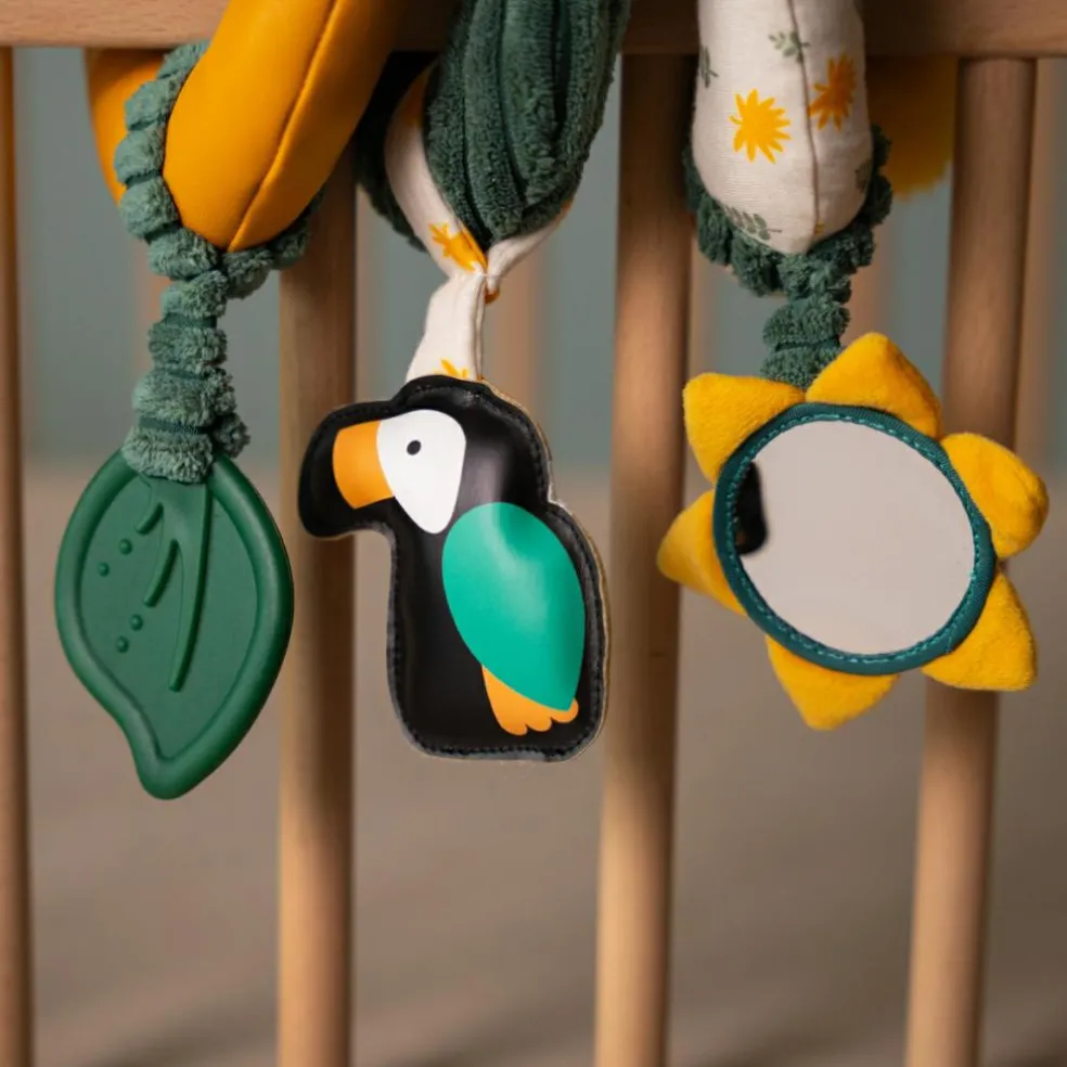 La spirale d’activité Little Big Friends Jungle amusera bébé lors de ses déplacements en poussette ou cosy.