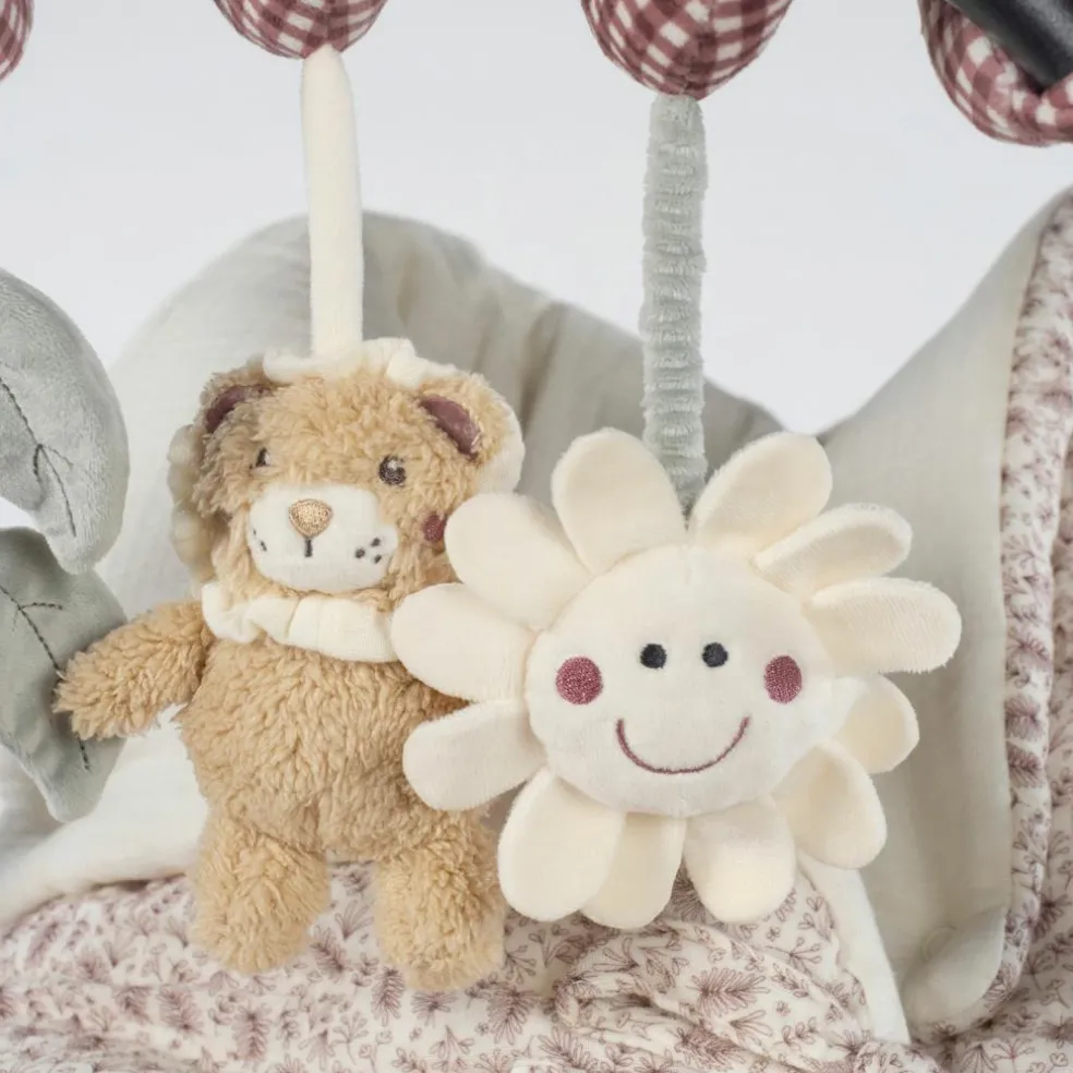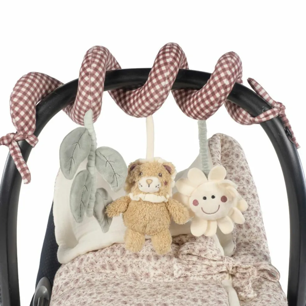 Conçue avec amour et pensée pour stimuler les sens de bébé, cette spirale en velours et peluche s’accroche facilement à la poussette, au siège auto ou au lit. Le petit lion Gala Cerise invite à l’exploration grâce à ses éléments suspendus aux textures variées, ses formes amusantes et ses sons doux. Chaque détail est étudié pour éveiller la vue, le toucher et l’ouïe tout en assurant une sécurité optimale.