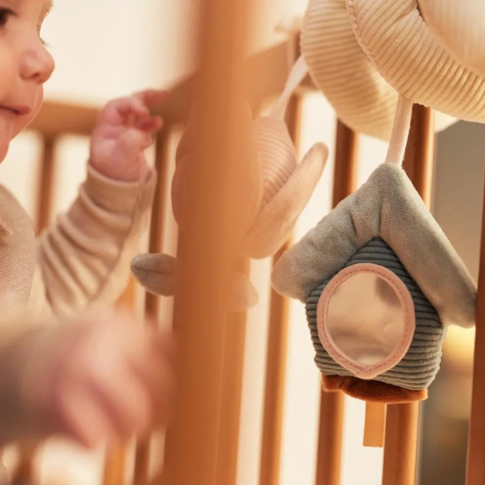 – Peut être fixé sur le cosy, la poussette, le parc, les barreaux du lit, etc.