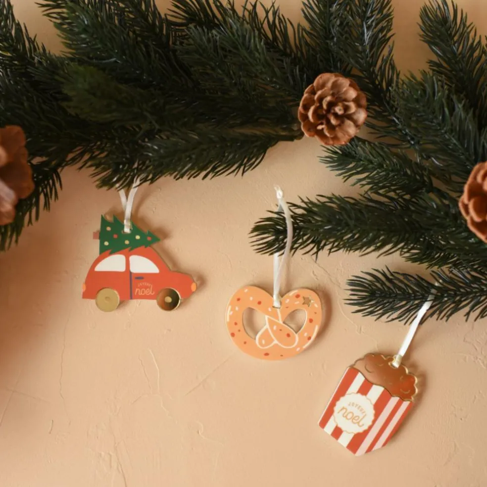 Créée en collaboration avec Print Your Love, marque française reconnue pour son savoir-faire artisanal, cette délicate suspension en plexiglas apporte une touche ludique et festive. Son design original en cornet de popcorn, rehaussé de doré avec l’inscription « Joyeux Noël », insuffle à votre décoration une note à la fois poétique et gourmande. À suspendre seule ou associée aux modèles Bretzel et Voiture pour une ambiance unique et chaleureuse.