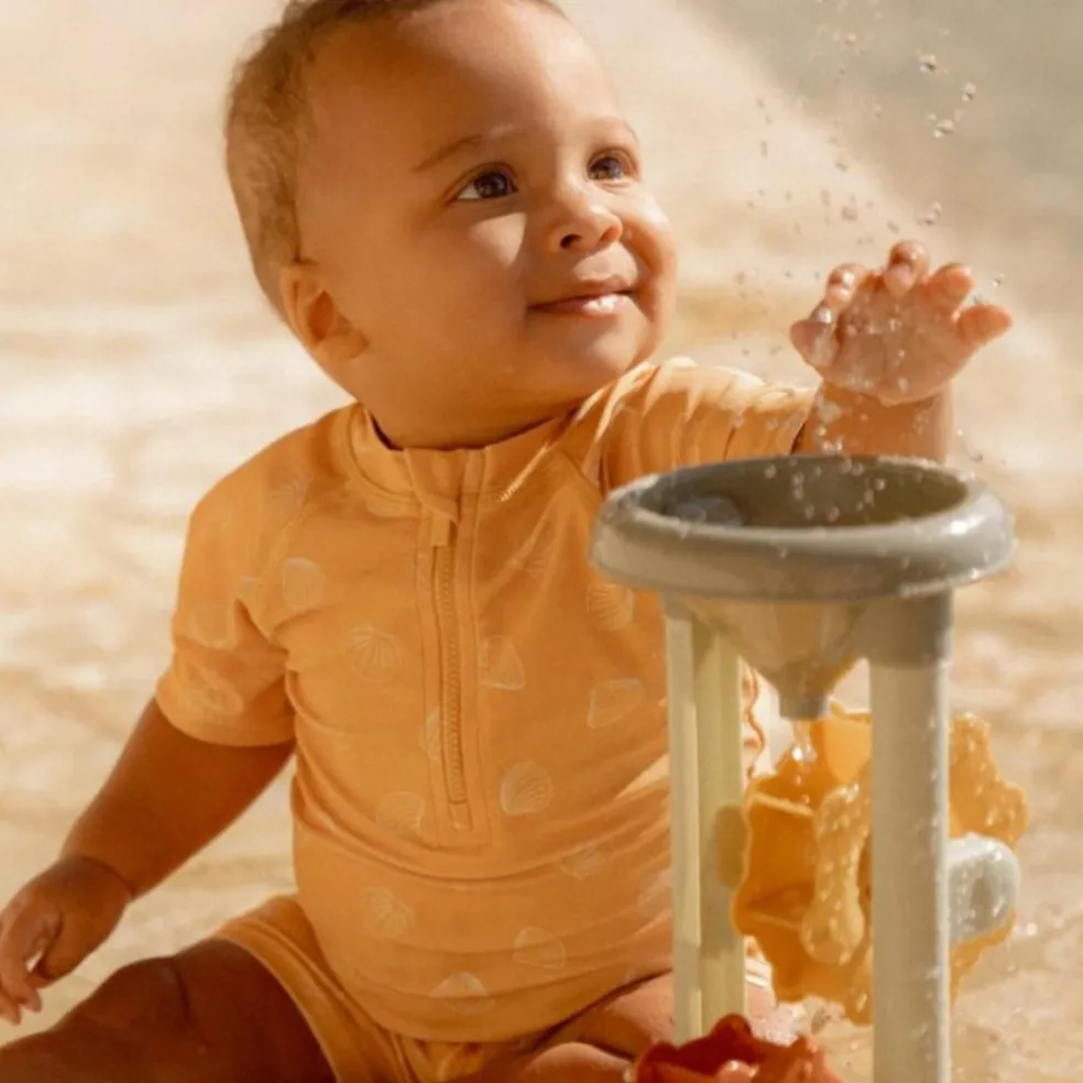 – Le tee shirt de natation Seashells Sunny est rempli de jolis petits coquillages sur fond jaune.
