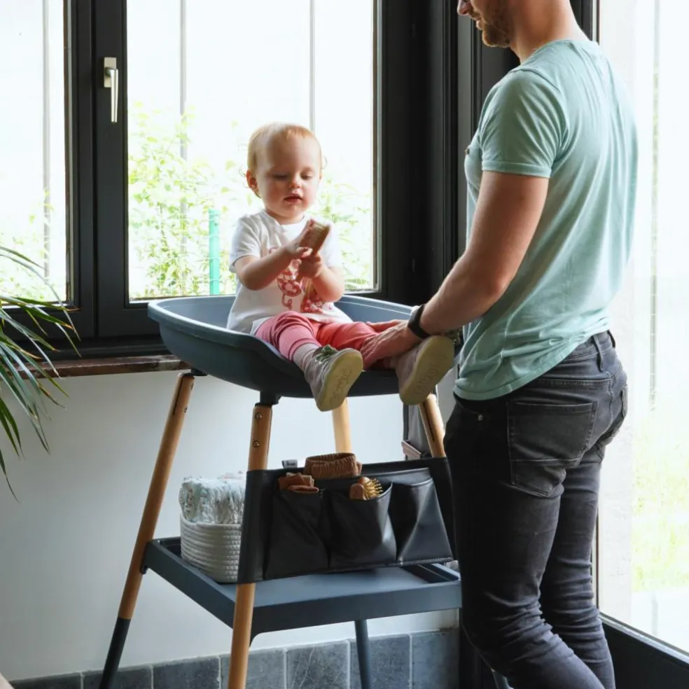 Les deux variantes sont dotées de solidespieds en bois, qui ajoutent une touche chaleureuse et naturelle à l’aspect moderne de la table. Pour plus de confort et de protection, des housses de matelas sont disponibles séparément, ce qui permet de garder la table à langer propre et bien rangée.