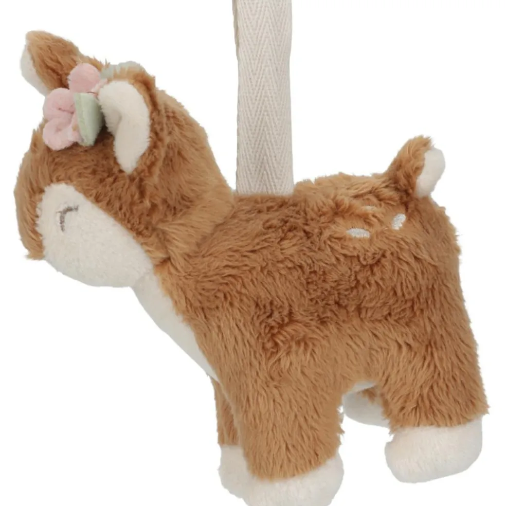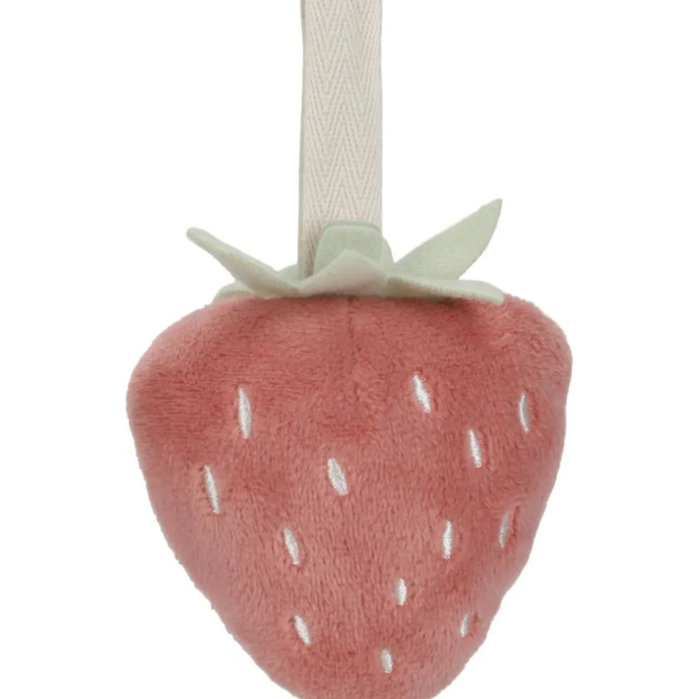 – Grâce à ses deux arches en velours côtelé, il invite bébé à bouger, tendre la main et saisir les 5 adorables peluches suspendues : un faon, un oiseau, une fleur, un champignon et une fraise.
