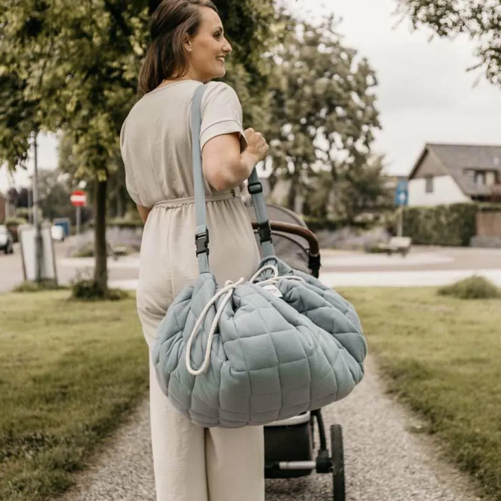 – 2 en 1 : sac de poussette et tapis de jeu.