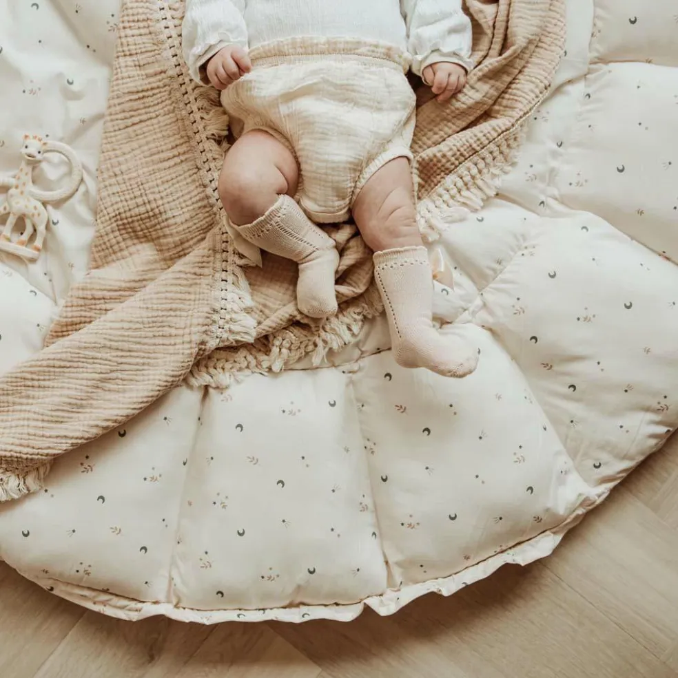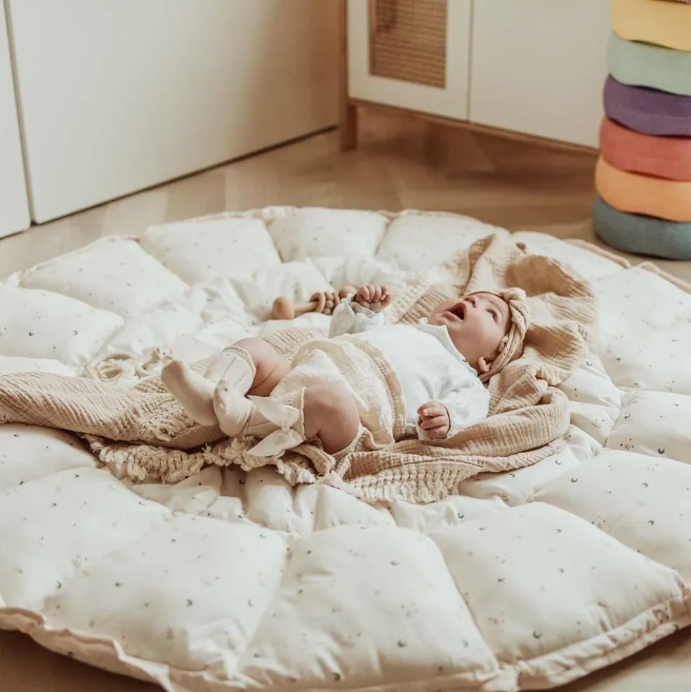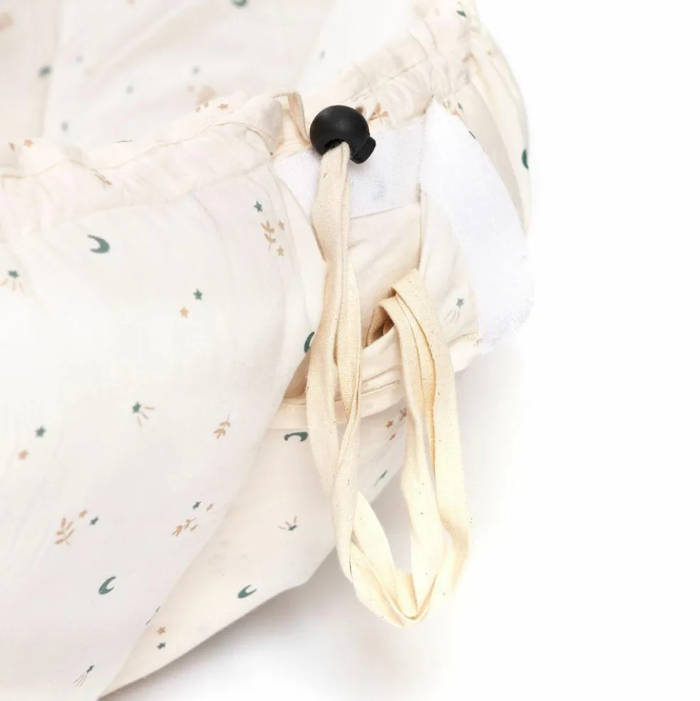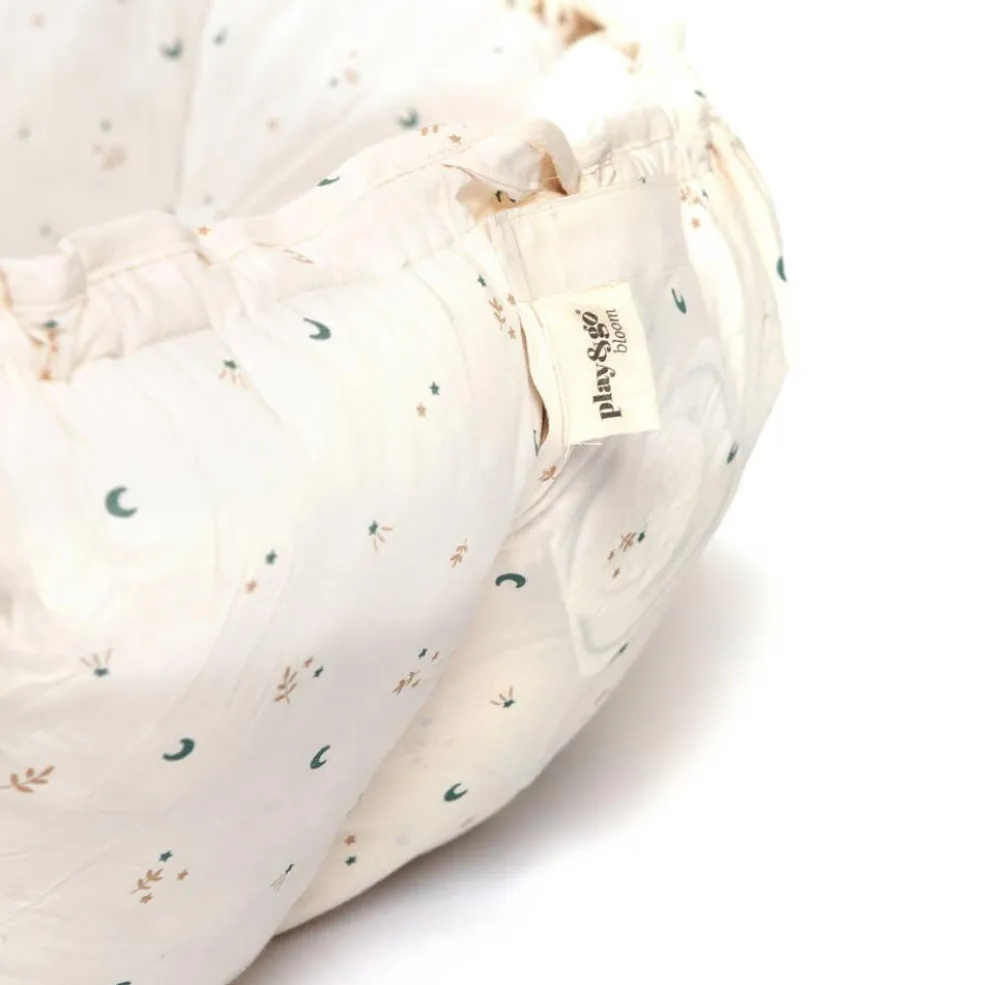 – 3 en 1 : tapis de jeu, sac de rangement pour jouets et cocon nid.