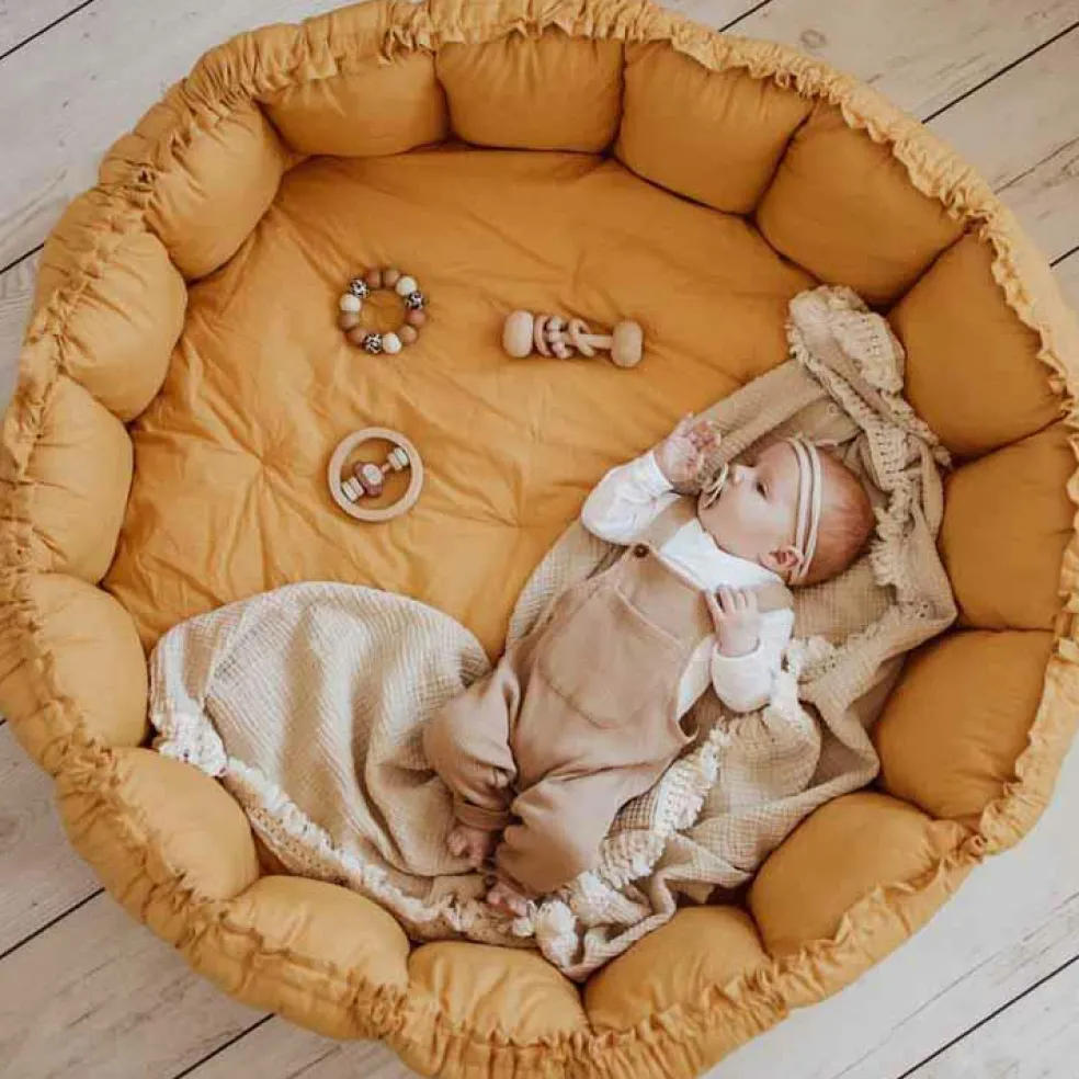 – 3 en 1 : tapis de jeu, sac de rangement pour jouets et cocon nid.