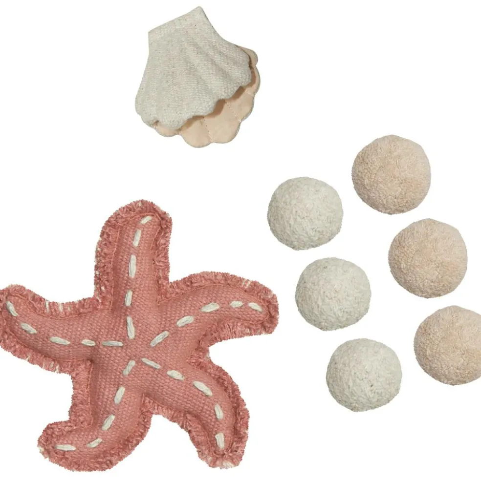 – 8 accessoires pour jouer incus : 1 coquillage + 1 étoile de mer + 6 pompons.
