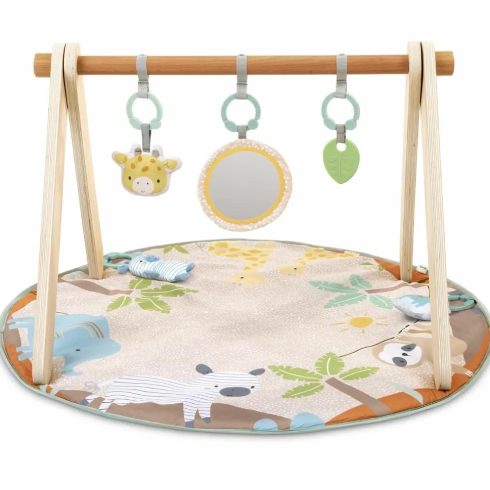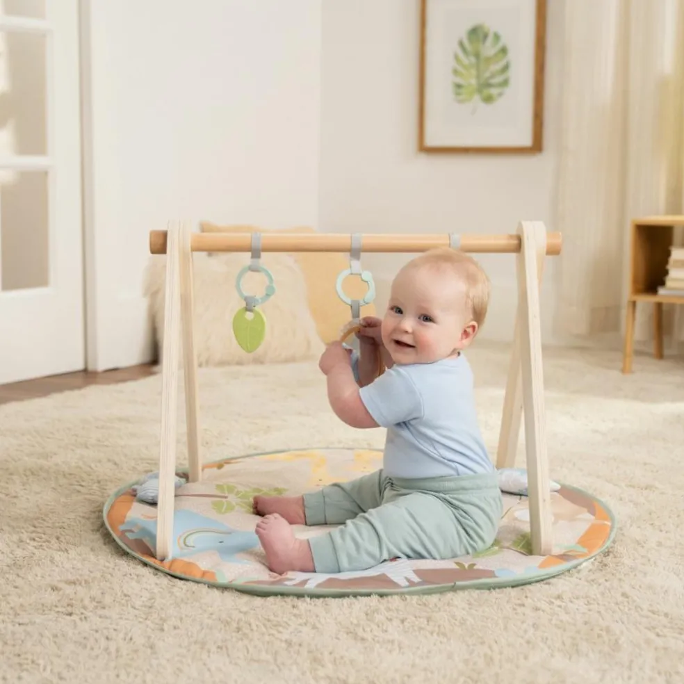 Un univers d’éveil tout en douceur avec le Tapis d’éveil avec arche en bois Tanner d’Ingenuity.