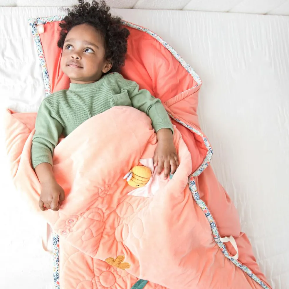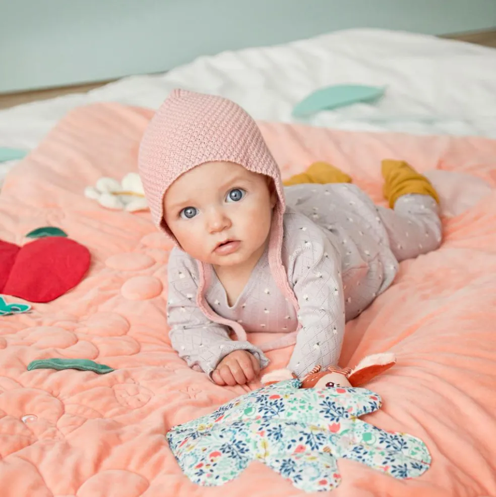– 2 en 1 : tapis de jeu et sac de couchage.
