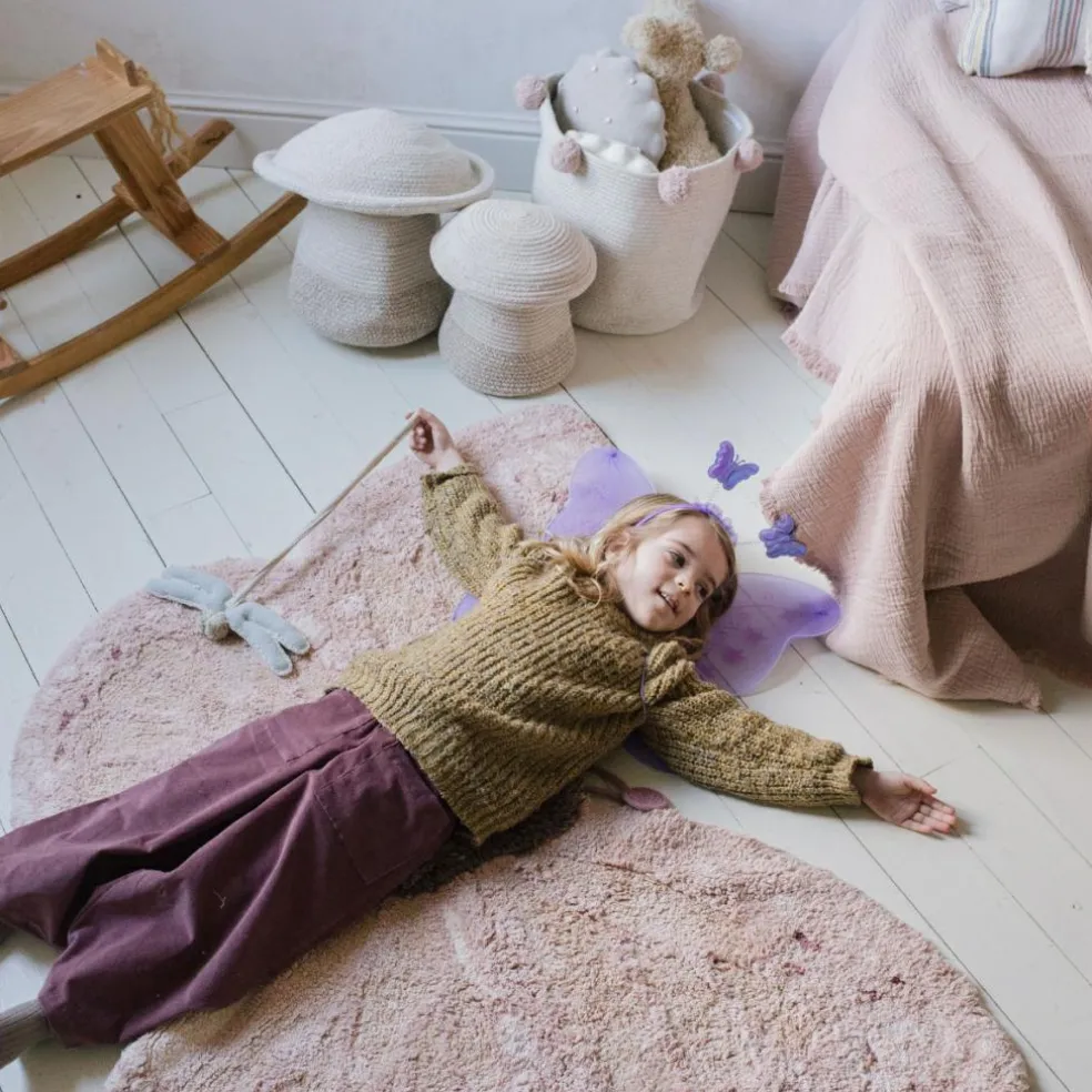 Ce charmant tapis en forme de papillon est fabriqué à la main avec du coton doux et est facile à laver à la maison. Il regorge de petits détails magnifiques, dont une palette de huit nuances de rose différentes qui se mélangent pour créer un papillon réaliste et une antenne soigneusement fabriquée à la main avec un cordon en coton qui peut facilement être retiré du tapis avant le lavage. Un choix parfait pour n’importe quelle chambre d’enfant.