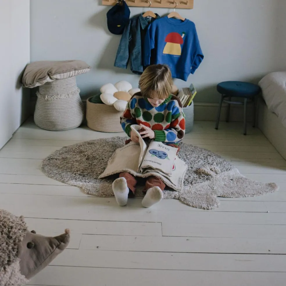 Préparez-vous à une ambiance boisée avec le tapis animal hérisson ! Un tapis en coton en forme de hérisson soigneusement conçu dans des couleurs naturelles et des marrons clairs, avec un poil long et une texture moelleuse qui simule les piquants du hérisson. Complet avec de jolis cache-oreilles et un œillet tressé, il apporte un charme rustique à n’importe quel espace. De plus, il est lavable, parfait pour ajouter une touche de confort inspiré de la nature à la chambre de vos enfants !