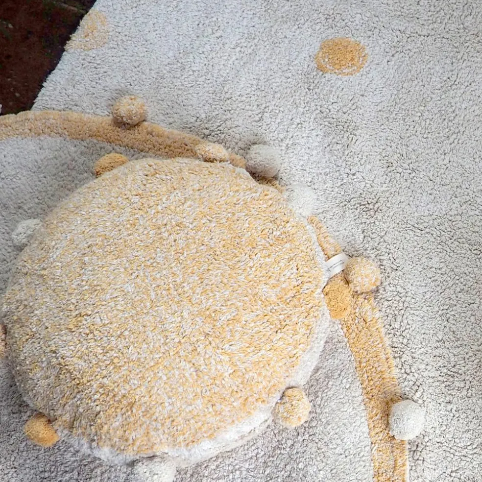 Le tapis lavable Hippy Dots natural miel de la marque Lorena Canals apporte une touche de décoration chaleureuse et naturelle avec style et raffinement à une chambre d’enfant.