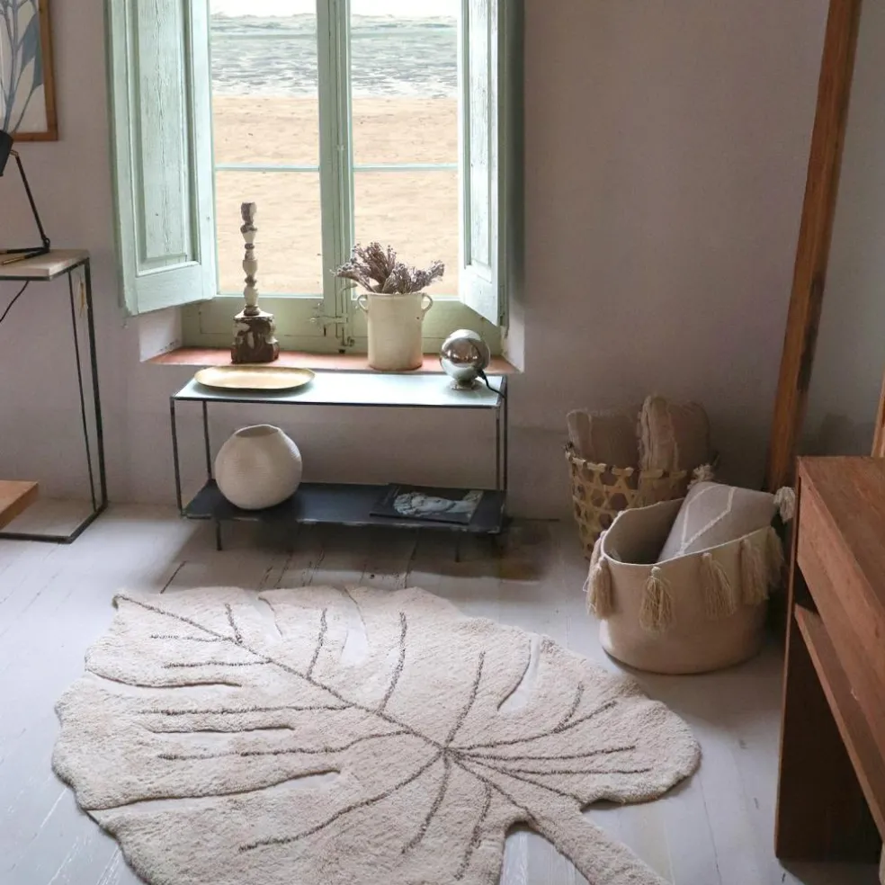 Le tapis lavable Monstera natural de la marque Lorena Canals apportera une touche exotique de décoration dans la chambre de votre enfant.