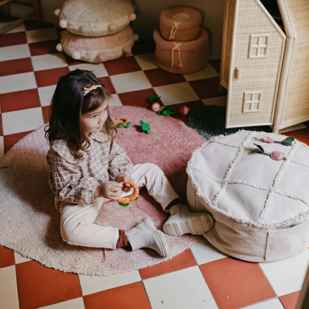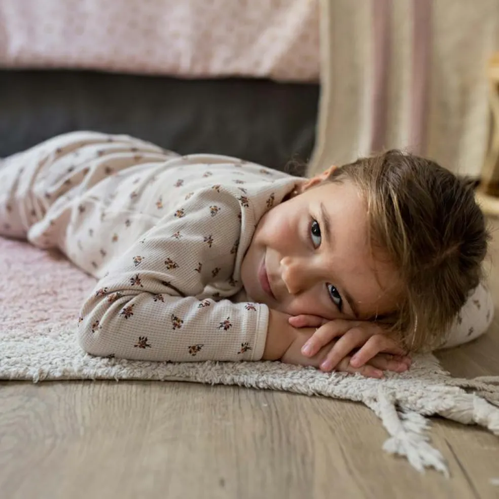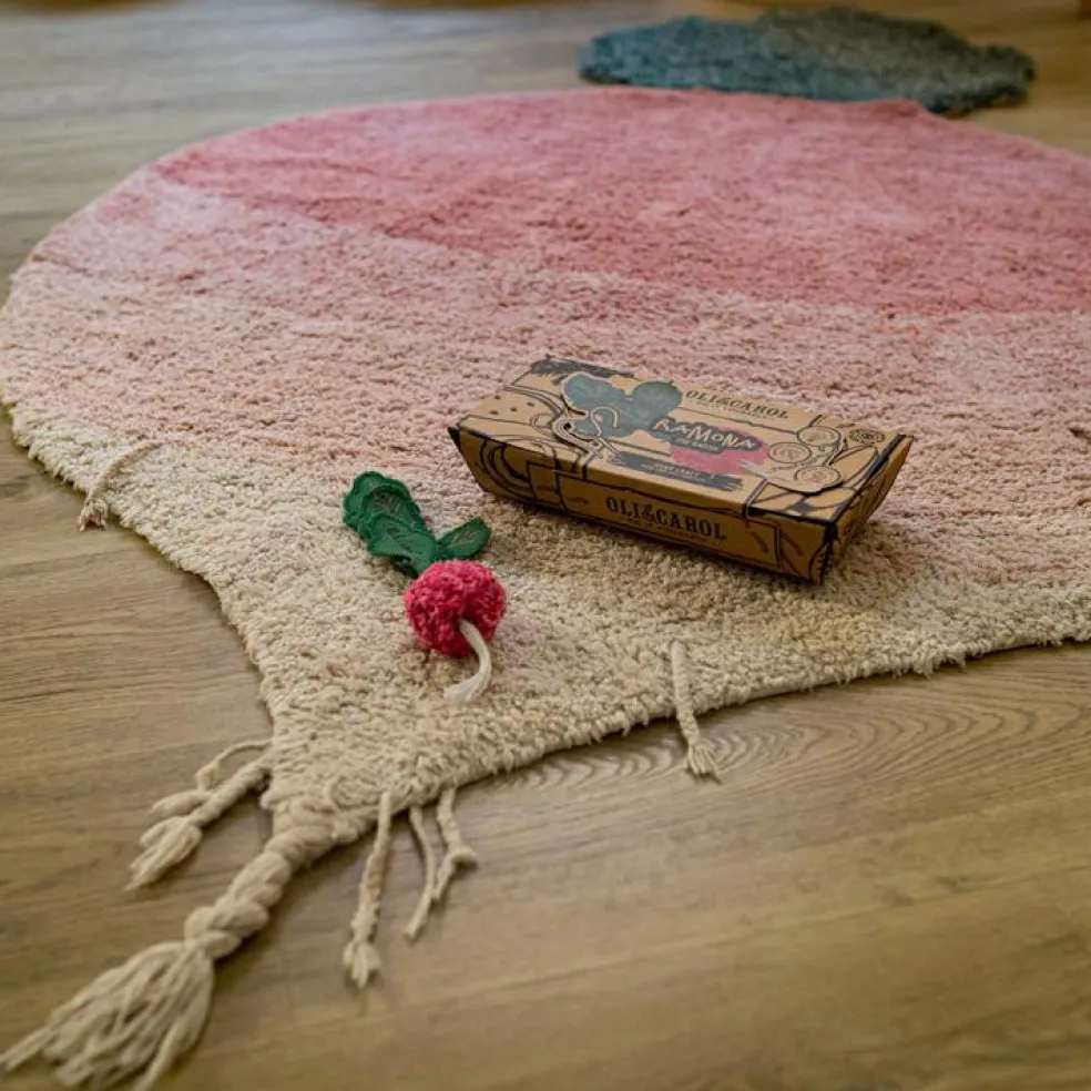 – Base du tapis fabriqué à partir de déchets textiles recyclés.