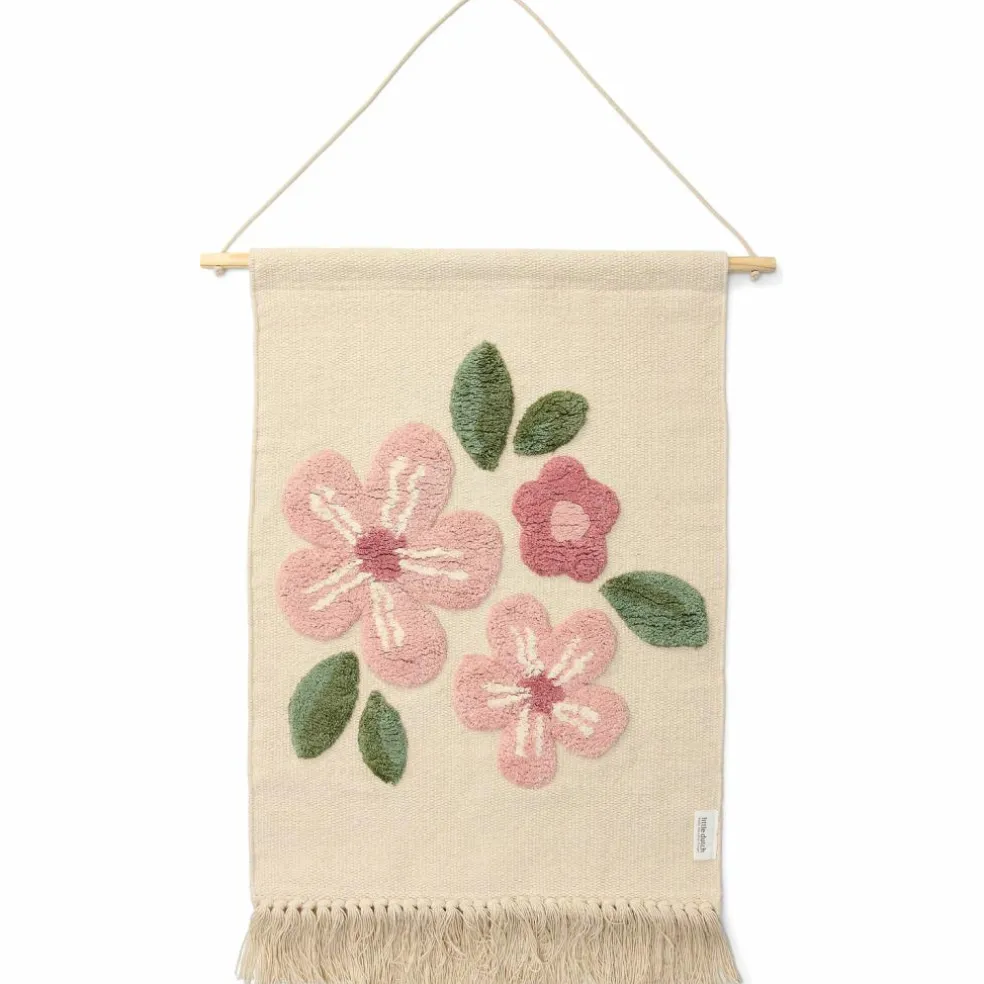 – Tapisserie murale en coton biologique. – Détails tuftés et pompons décoratifs. – Motif floral issu de la collection Fairy Garden.