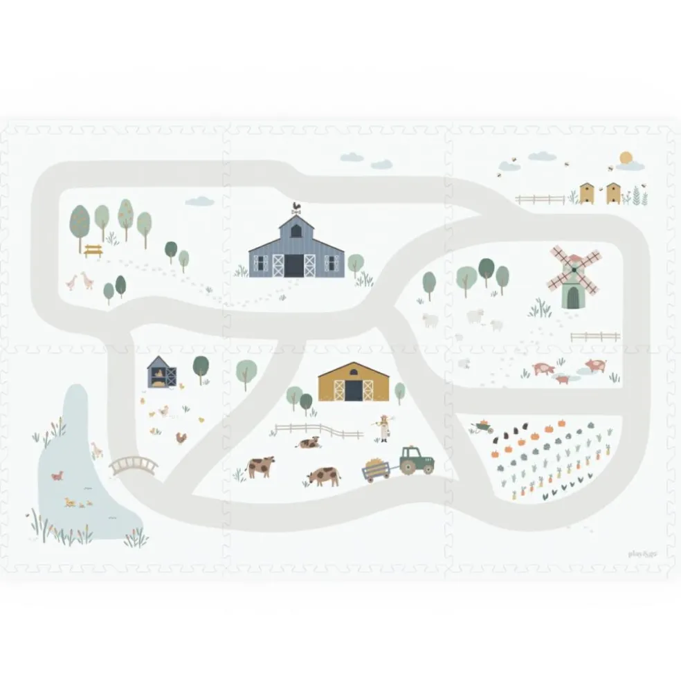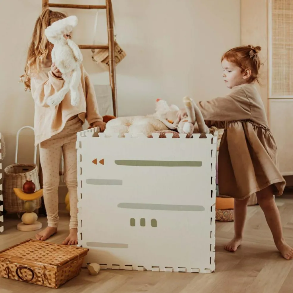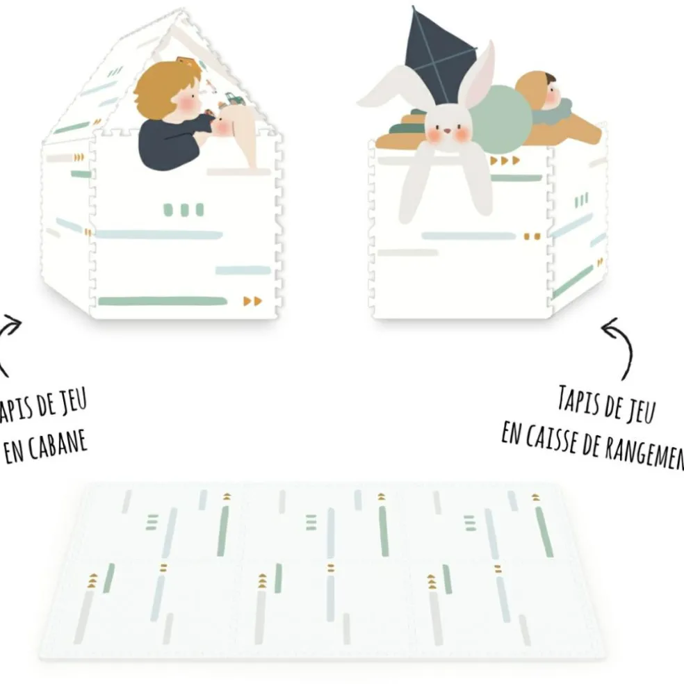 – 2 en 1 : tapis de jeu puzzle, boîte de rangement.
