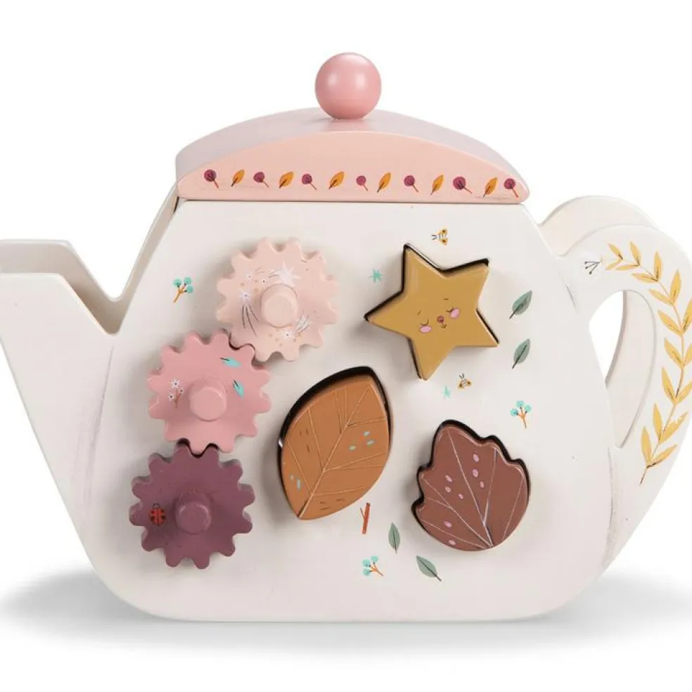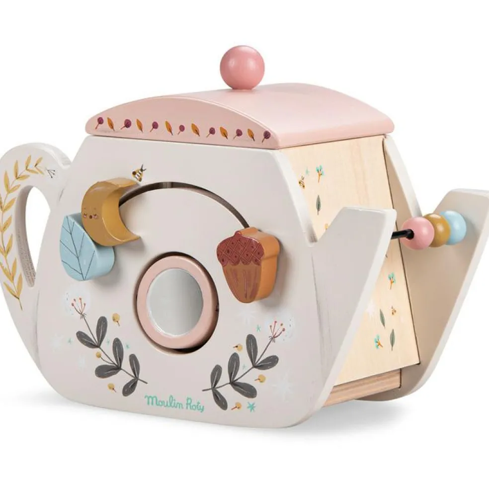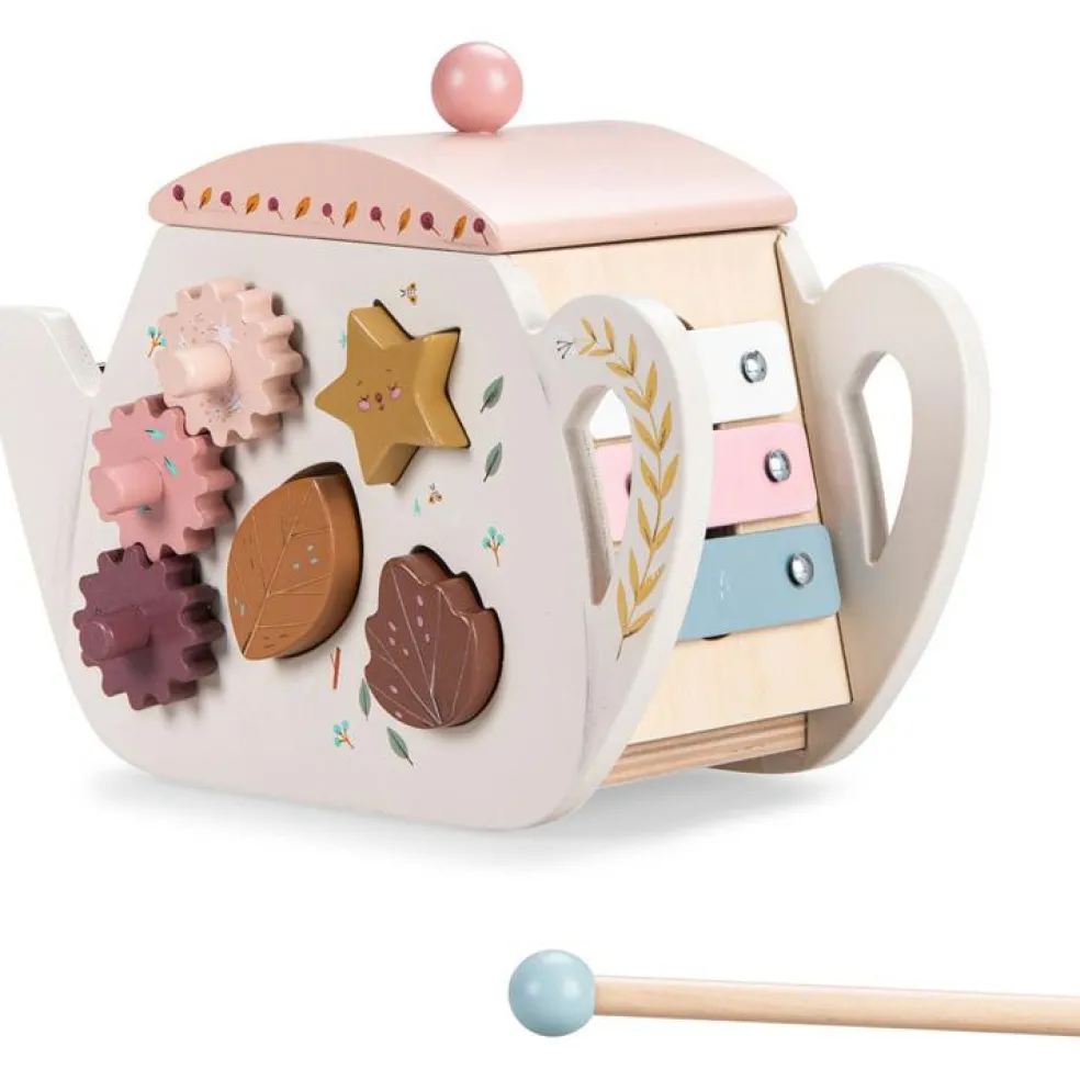 – Différentes activités, boulier, formes à encastrer, roues dentées à faire tourner, xylophone etc.