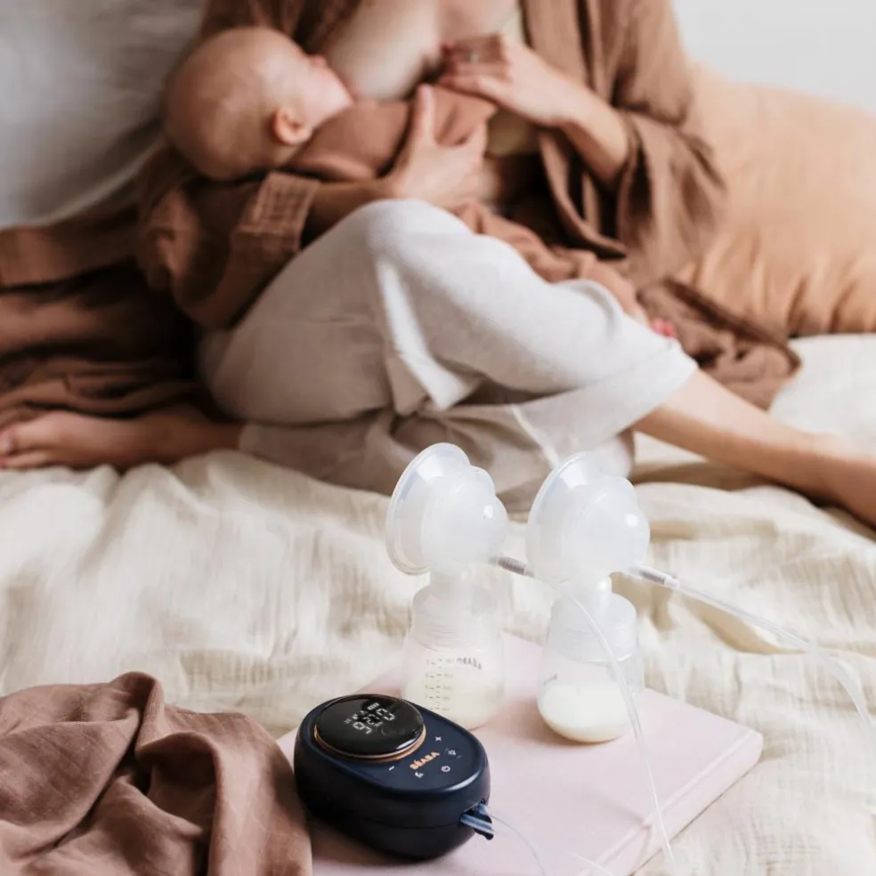 – Le tire-lait électrique double Béaba est équipé de trois modes d’expression imitant la succion naturelle du bébé avec neuf niveaux de puissance ajustables.