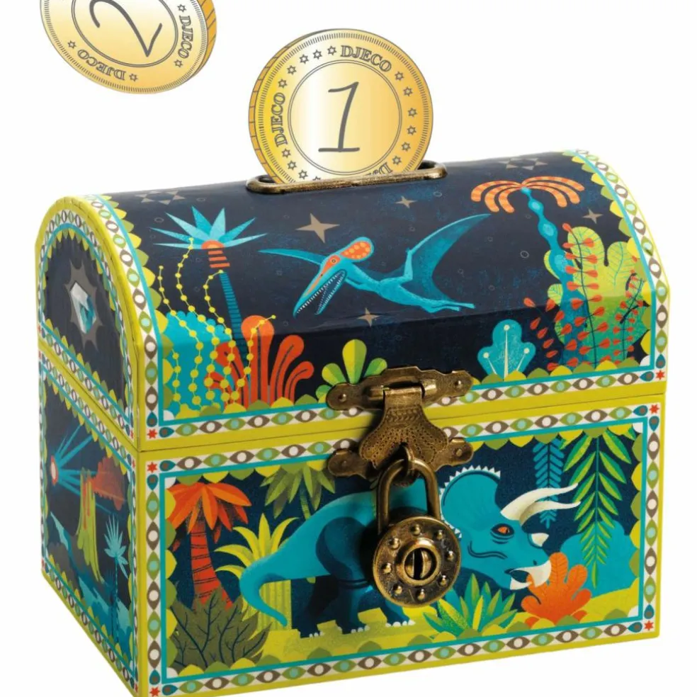 Tirelire coffre à trésor Djeco – Collection Dinosaure et Danseuse