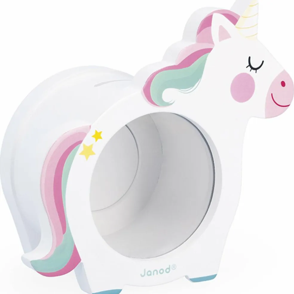 Apprenez la magie de l’épargne dès le plus jeune âge avec la Tirelire en bois Licorne de Janod !