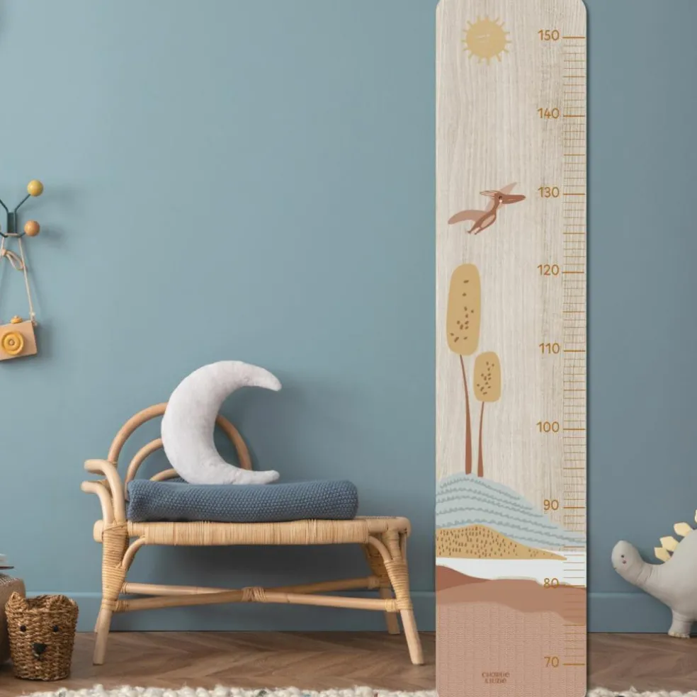 Découvrez la magie de voir grandir vos enfants avec notre toise Paysage Dino de Charlie et Suzie, une création française qui apporte une touche de gaieté et de tendresse dans leurs univers. De 0 à 12 ans, suivez leur croissance de 70 à 150 cm, et gardez un souvenir précieux de chaque instant de leur évolution. Conçue avec amour en Anjou, cette toise en bois n’est pas seulement un objet de mesure, mais un véritable compagnon de chambre, prêt à être découvert dans son élégant emballage.