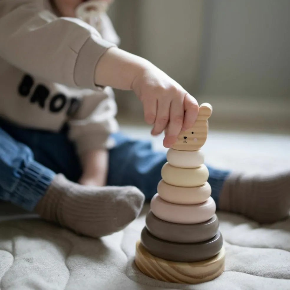 Un jeu d’éveil intemporel et naturel : la Tour à empiler Teddy Nature de Jabadabado !