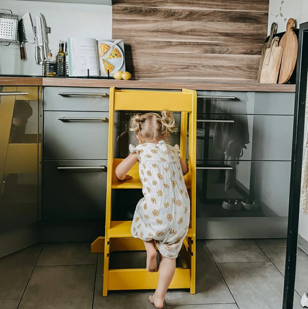 – Conçue pour rapprocher l’enfant du plan de travail ou de la table.