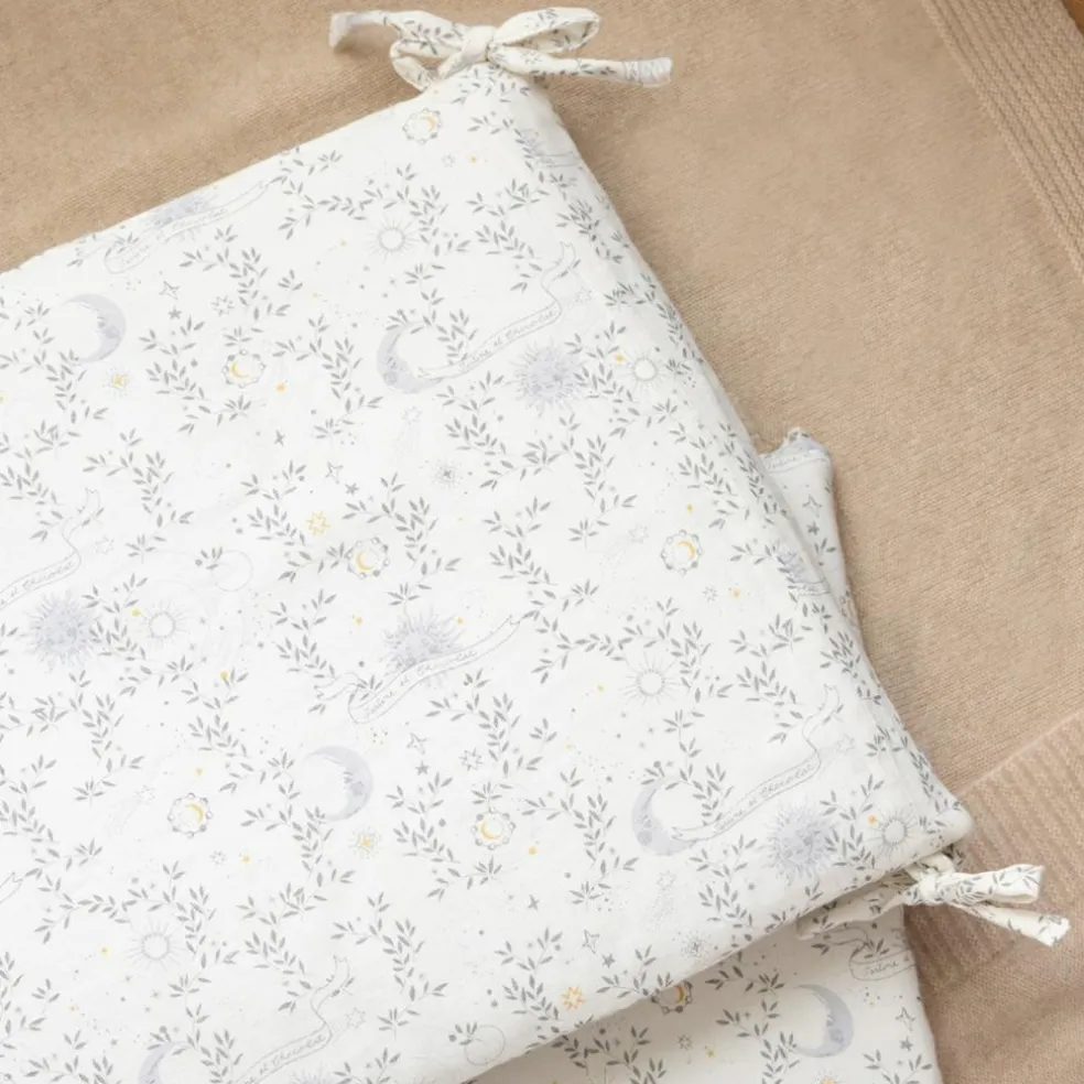 Dans un cocon délicatement nacré, ce tour de lit crée un univers apaisant et sécurisé pour votre tout-petit. Inspiré par la poésie des nuits étoilées, il enveloppe le lit de bébé avec tendresse, pour transformer chaque coucher en moment de sérénité. Grâce à son design sobre et élégant, il s’intègre harmonieusement dans toutes les chambres, qu’elles soient classiques ou contemporaines.