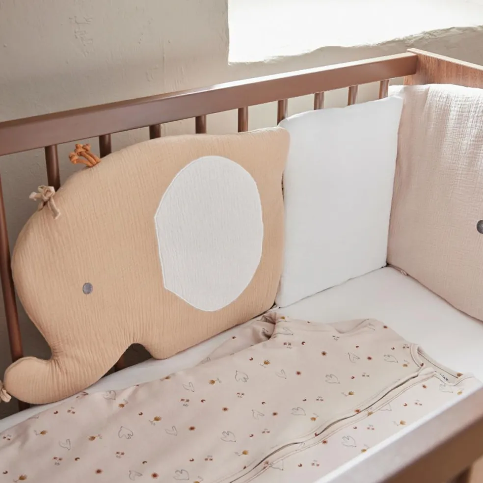 – Protection et sécurité : les tours de lit/protèges barreauxcréent une barrière douce autour du lit, ce qui peut aider à éviter que bébé ne se cogne contre les barreauxpendant son sommeil ainsi qu’à prévenir les risques de coincement des bras ou des jambes entre les barreaux.