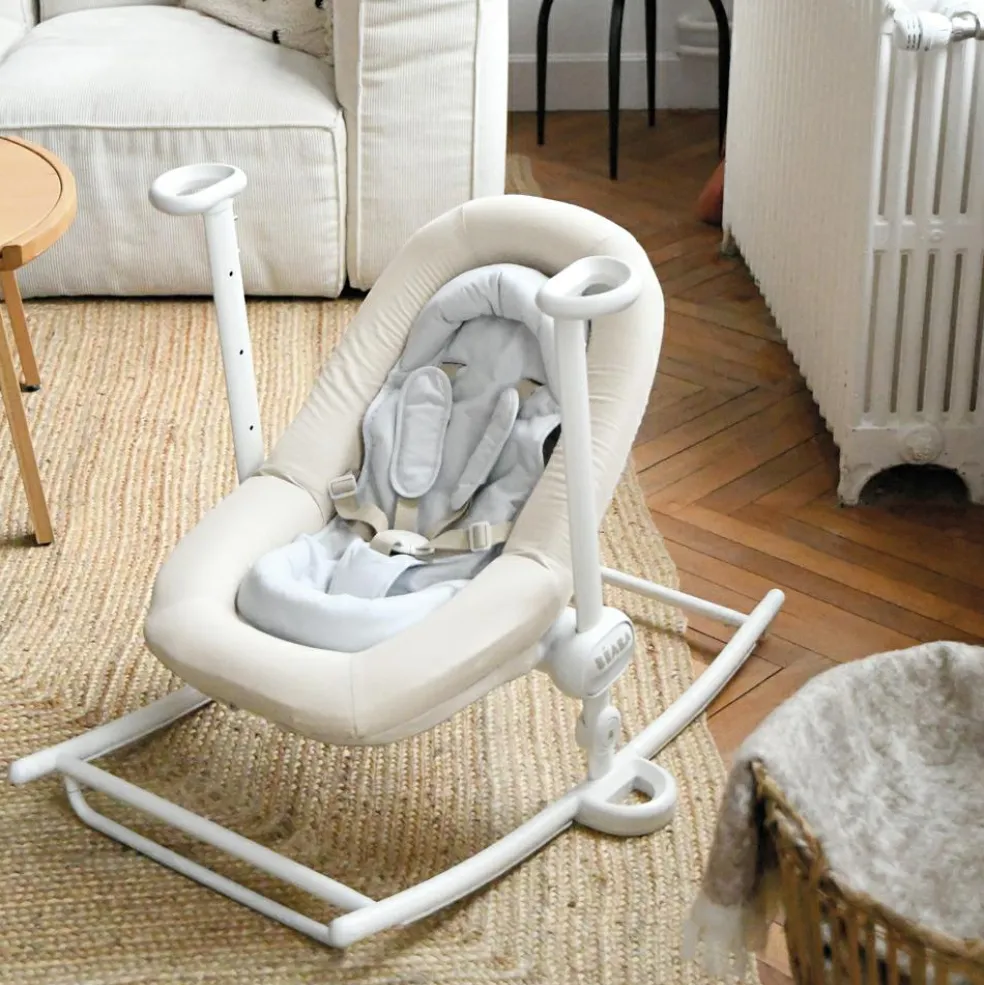 – Fonction bascule avec frein intégré : pour bercer l’enfant en toute sécurité.