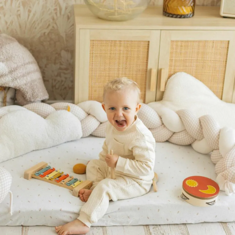 Inspirée de l’univers tendre et poétique de la petite enfance, cette tresse décorative transforme instantanément un lit, un parc ou un espace cocooning en un véritable cocon de confort. Son motif vichy intemporel évoque les souvenirs d’enfance tout en s’intégrant parfaitement dans une décoration moderne et apaisante.
