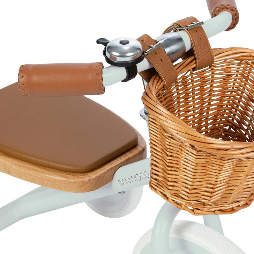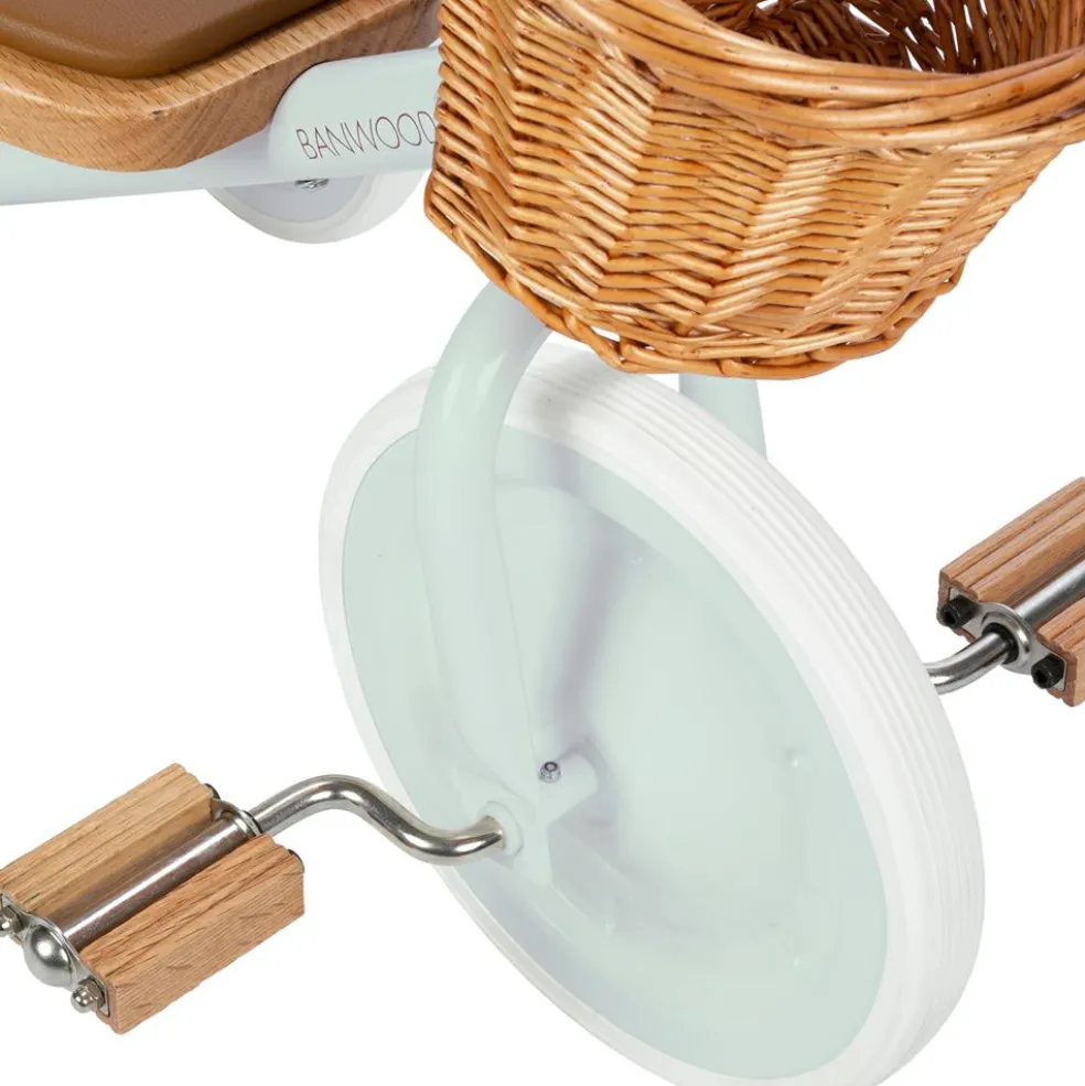 – Un design minimaliste et élégant : Inspiré d’un style vintage, le Trike menthe séduit par son cadre épuré et sa douce teinte menthe. Les détails en cuir vegan et le panier en osier ajoutent une touche raffinée qui plaira aux parents comme aux enfants.