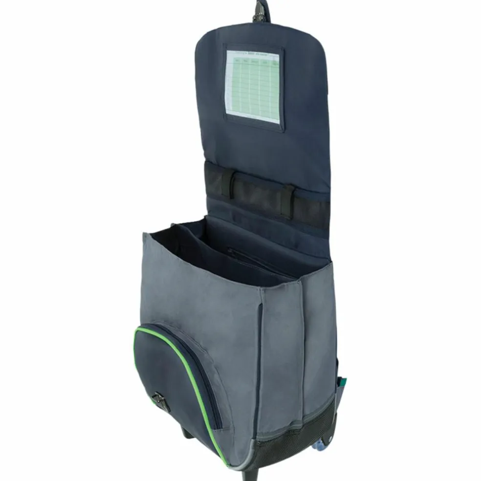 Avec ses patchs ballon et crampons, le modèle Tiago a été créé pour les footballeurs en herbe ! Sobre et classique avec son duo de couleurs gris et marine, ses accents aux nuances de vert lui apportent un dynamisme élégant ! Ce cartable trolley est doté d’une ganse et d’une poche en matière grainée qui n’est pas sans rappeler les ballons de foot.