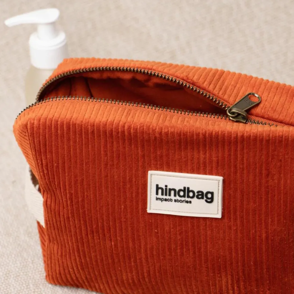 Chaleureuse, pratique et responsable : la trousse de toilette Léon Velours Brique de Hindbag allie élégance et fonctionnalité pour toutes vos escapades !