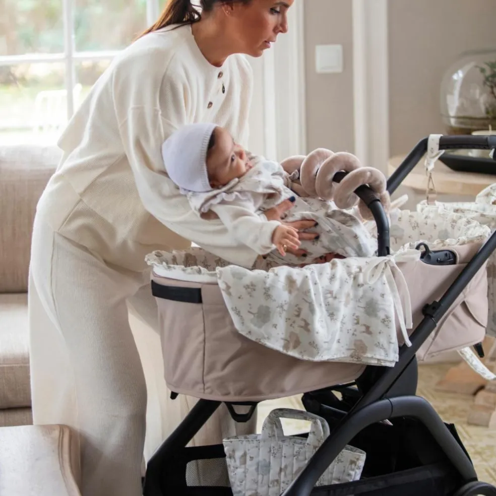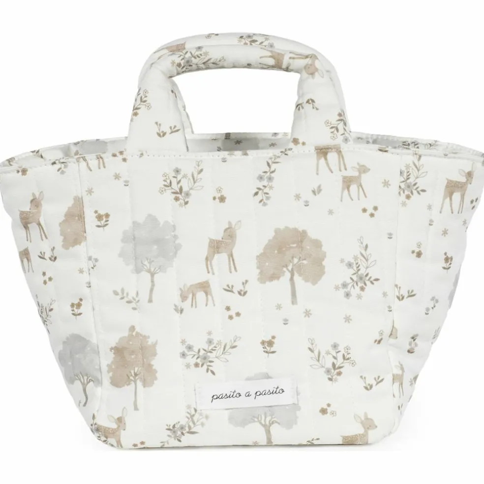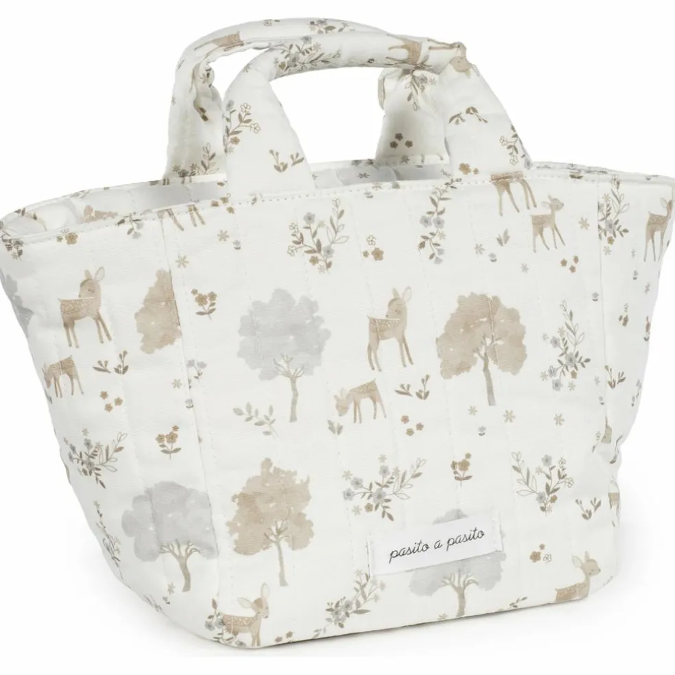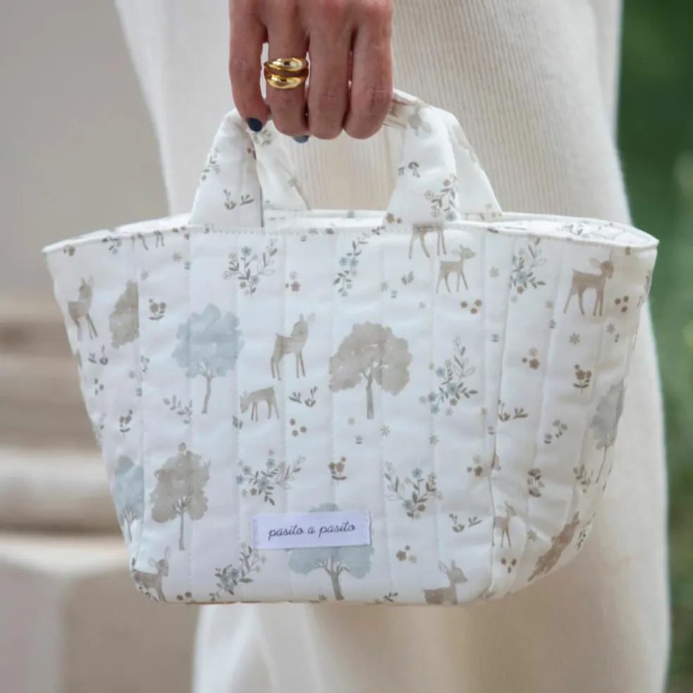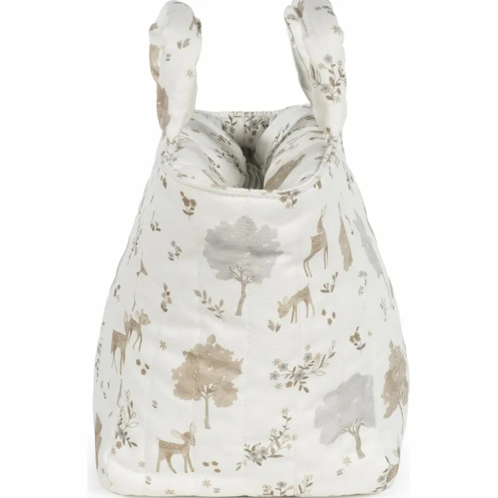 – La trousse de toilette Nara pour bébé fabriquée en toile de coton 100% avec un délicat imprimé de cerfs et d’arbres dans des tons neutres, est un petit sac spécialement conçu pour transporter tous les articles de toilette de votre bébé lorsque vous sortez de la maison.