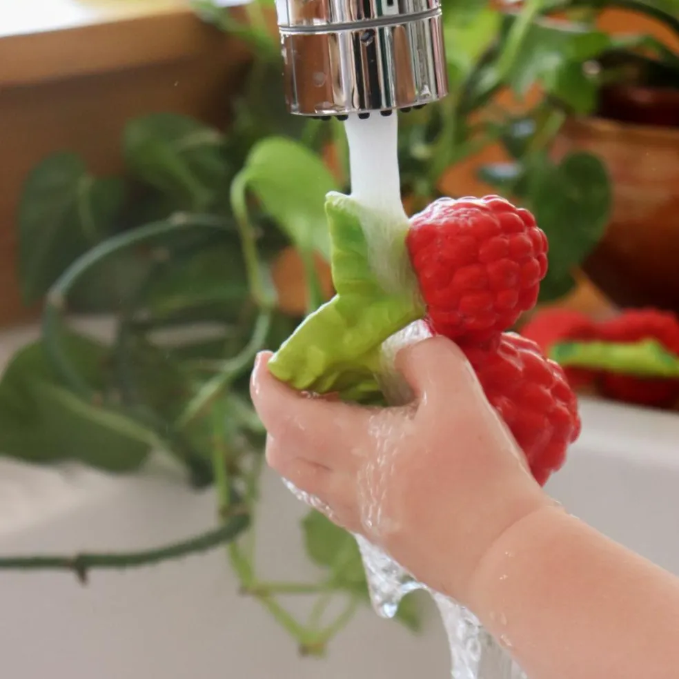 Faites découvrir à votre bébé le plaisir de la nature avec Valery the Raspberry d’Oli&Carol, un adorable anneau de dentition inspiré des framboises !