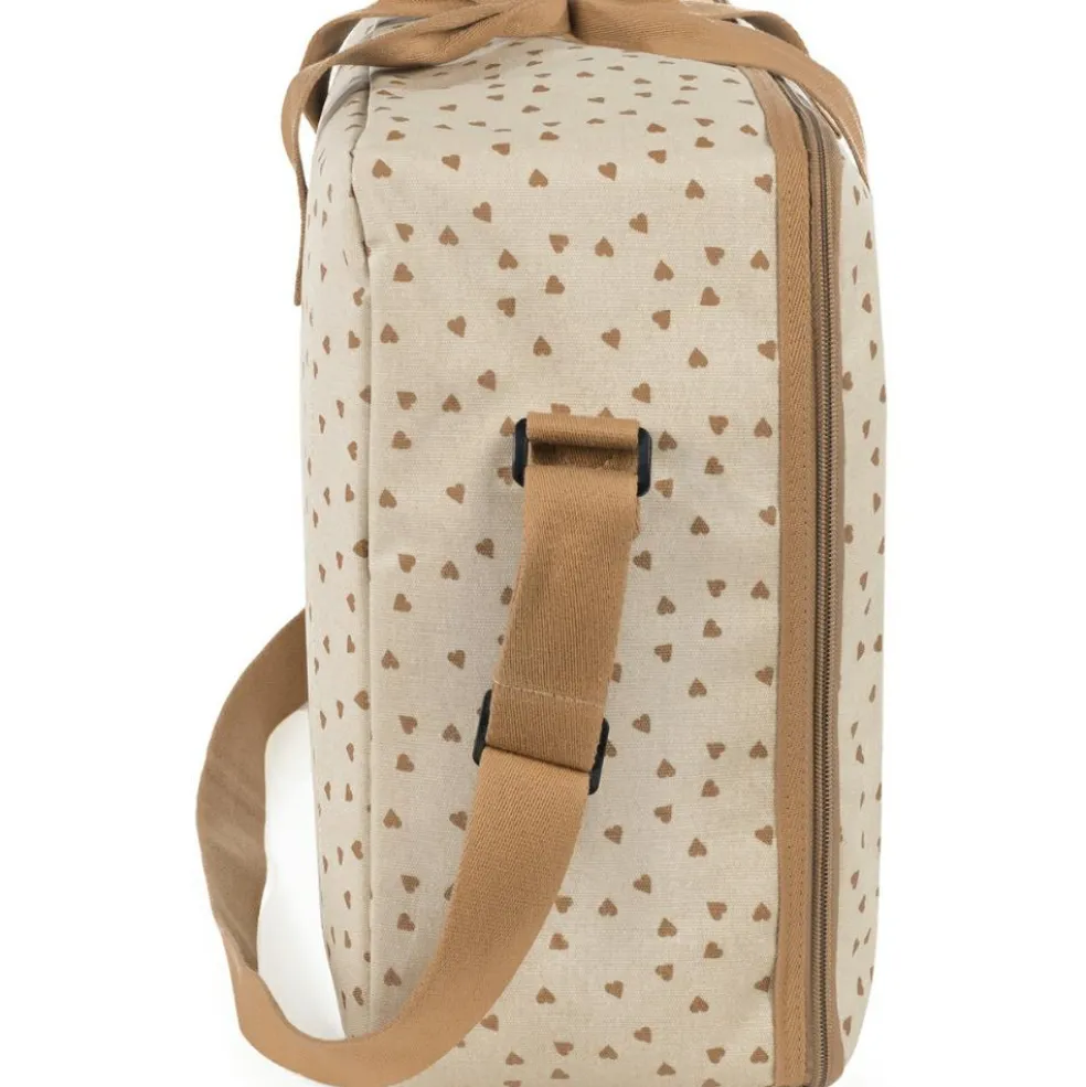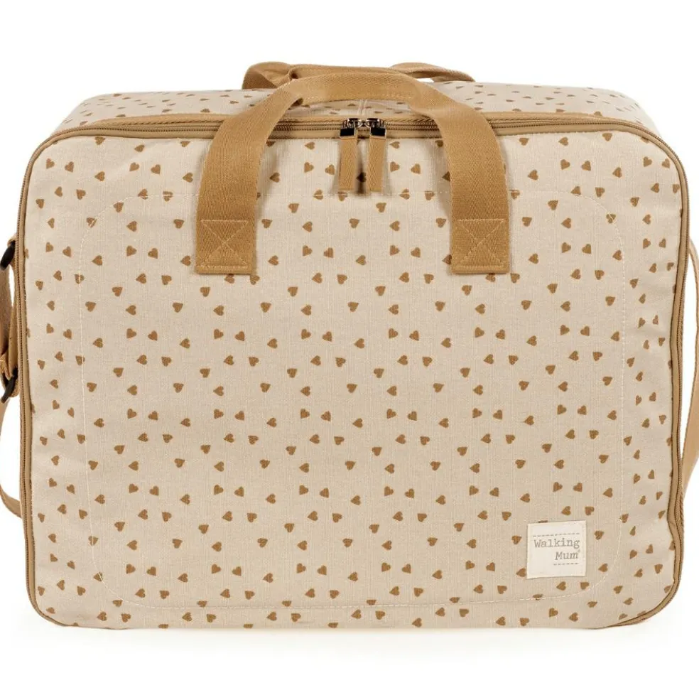 Une valise de maternité élégante et fonctionnelle avec le modèle cœurs Poppy Cannelle de Walking Mum