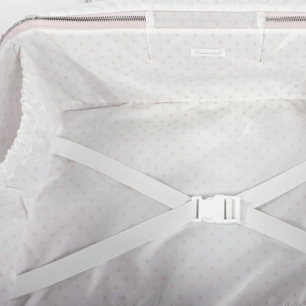 – La valise d’hôpital a une doublure intérieure avec des élastiques pour maintenir les vêtements et se ferme solidement avec une fermeture éclair bi-directionnelle qui permet d’ouvrir complètement la partie supérieure.