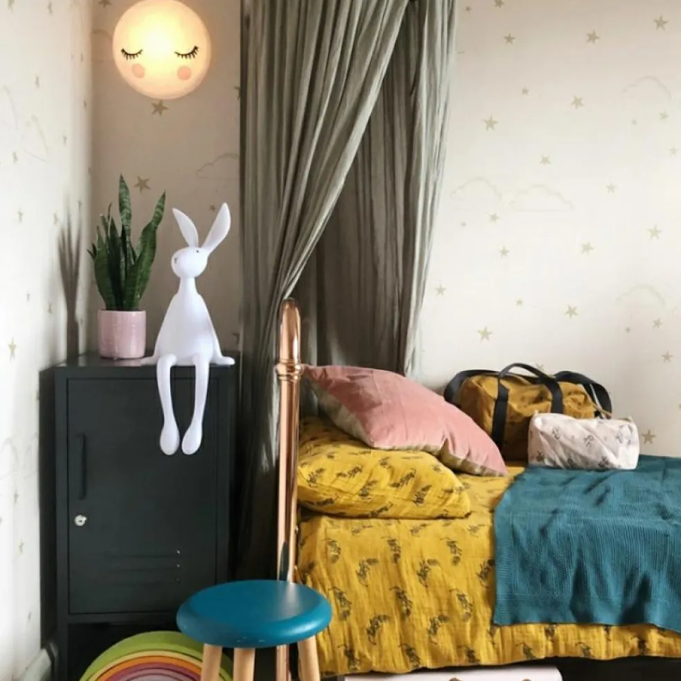 La veilleuse lune Miss Moon de la marque Rose in April apaise bébé au moment du coucher pour qu’il s’endorme en toute sérénité.